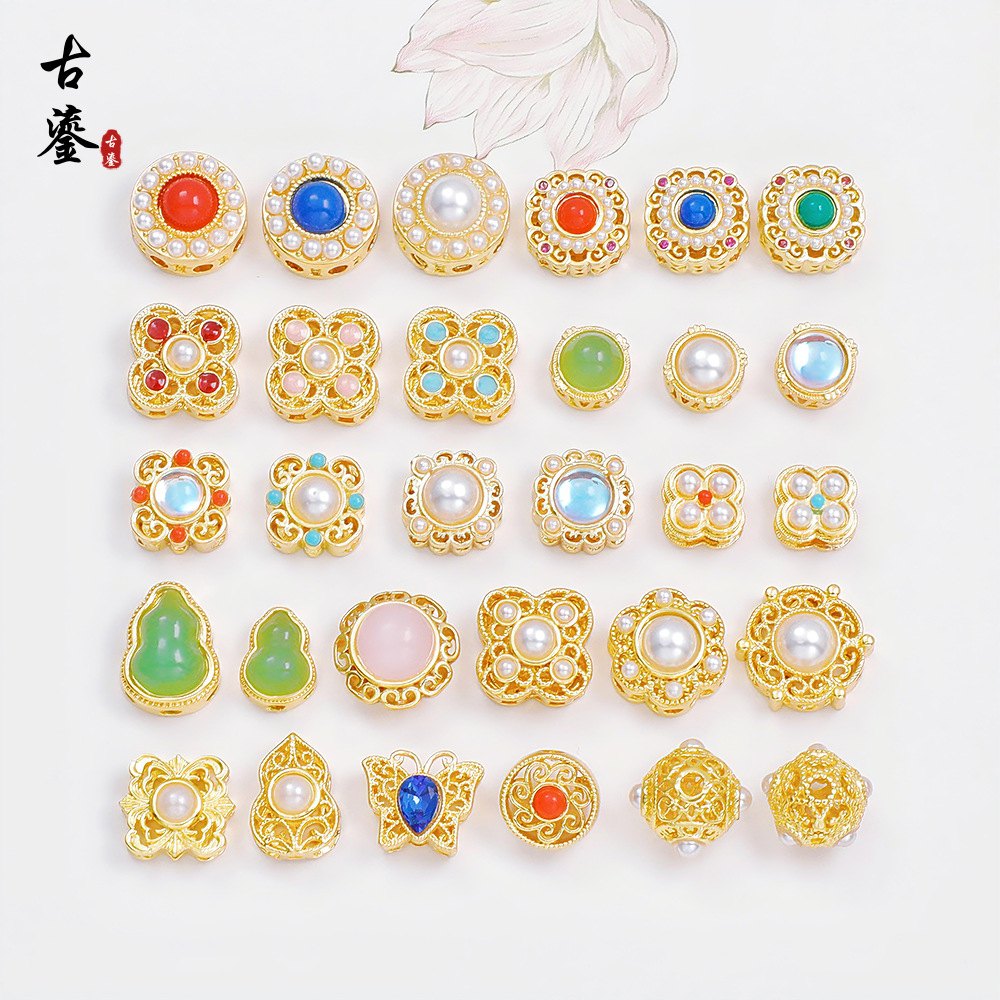 DIY部品保色焼藍真珠如意四葉草背雲隔珠百合ブレスレットネックレス材料卸売り