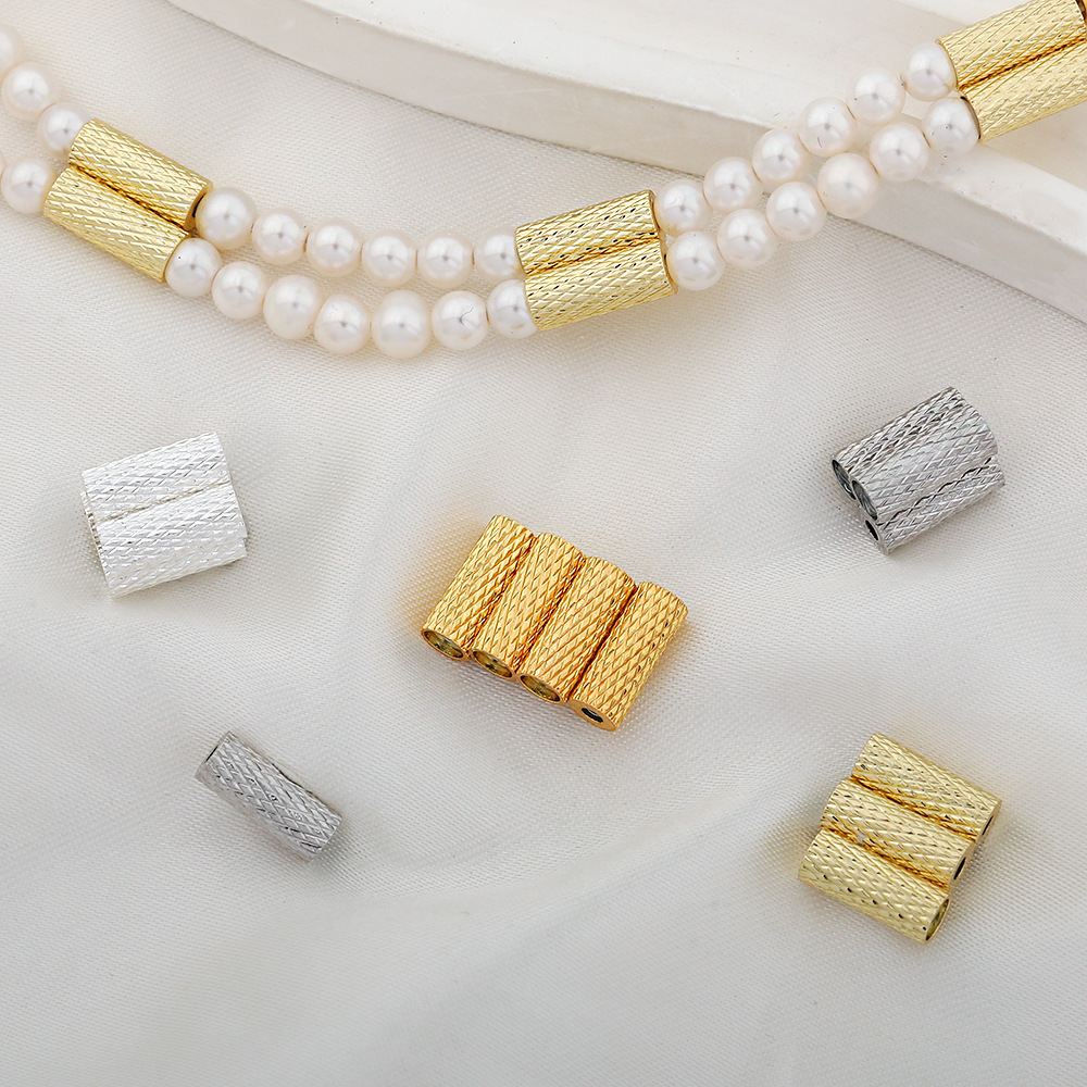 18k包金保色车花磁管直管diy饰品配件珍珠项链手链磁铁扣批花隔管