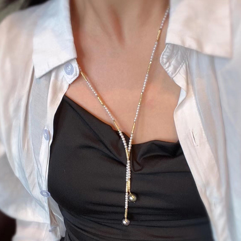 DIY部品S925純銀真珠ネックレスセーターチェーン磁気ストロー