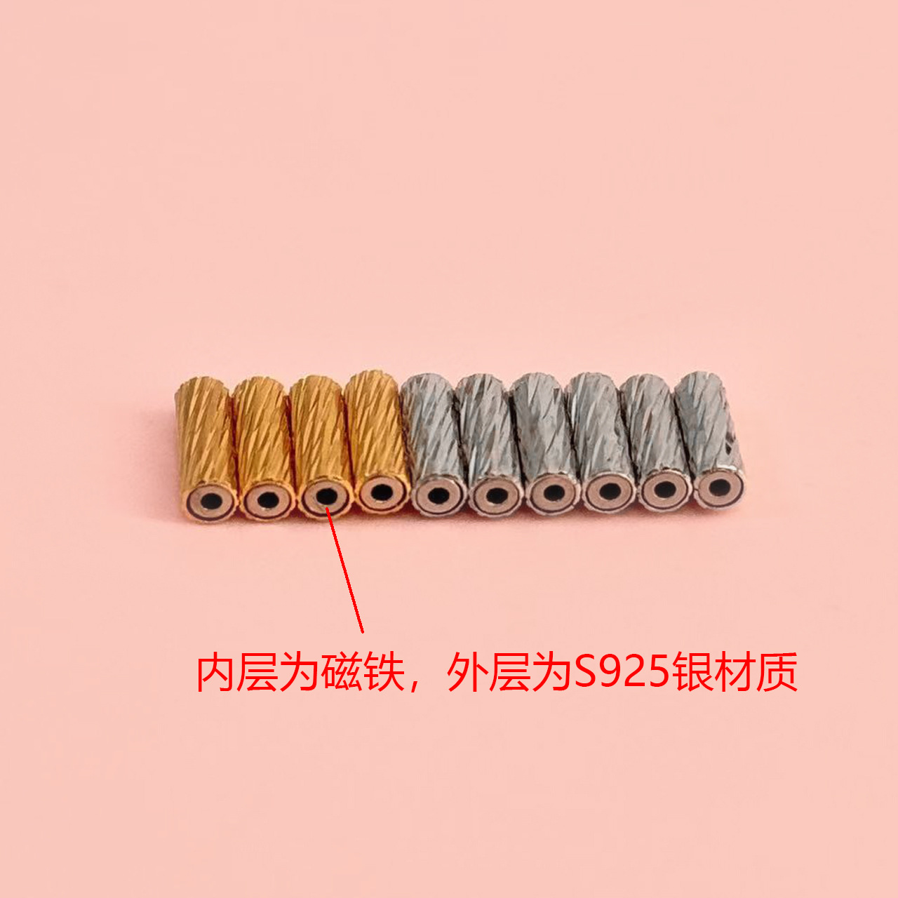 s925纯银车花磁铁直管串珠饰品配件diy水晶手链编绳金色电镀隔珠