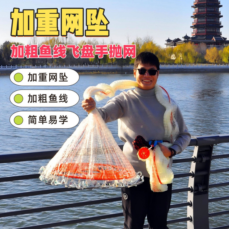 厚手のモノフィラメント釣り糸、加重されたコアドロップ、フリスビー型手投げ網、大型フリスビー、水中高速、引っ掛かり防止ネット