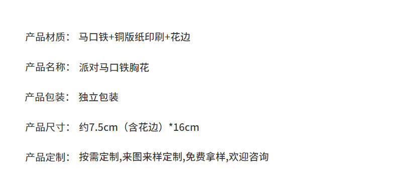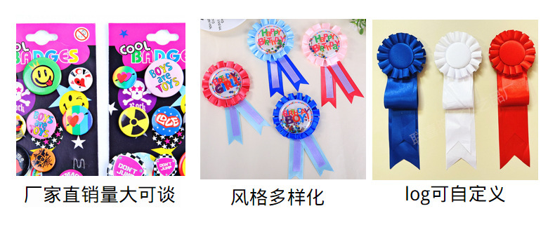 现货胸章马口铁空白花边荣誉徽章 生日徽章聚会派对装饰用品批发