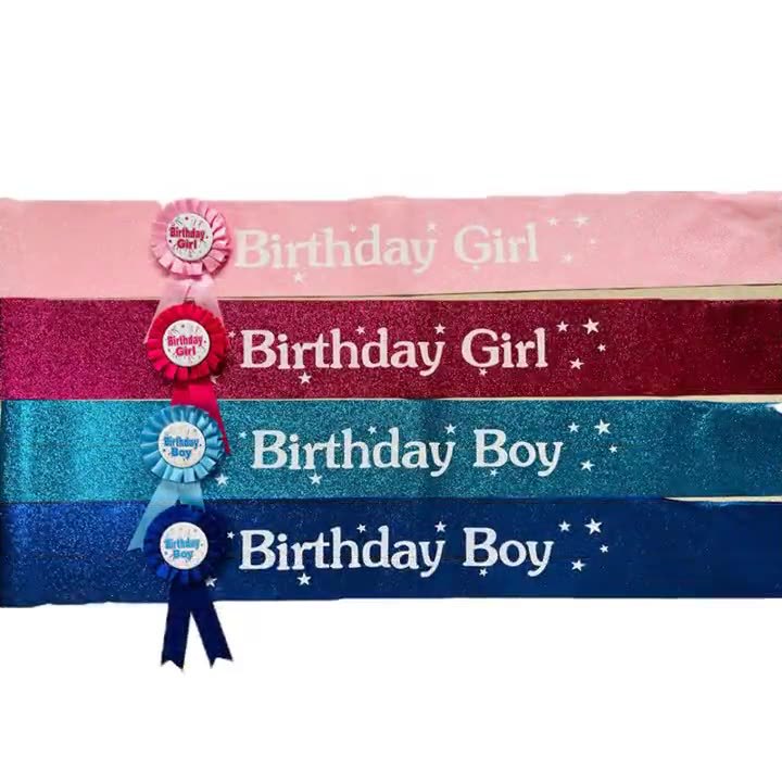 Amazon ebay 新しいブリキバッジ男の子と女の子の誕生日スーツ誕生日女の子ショルダーストラップ