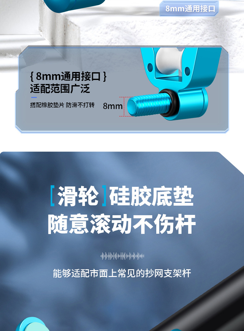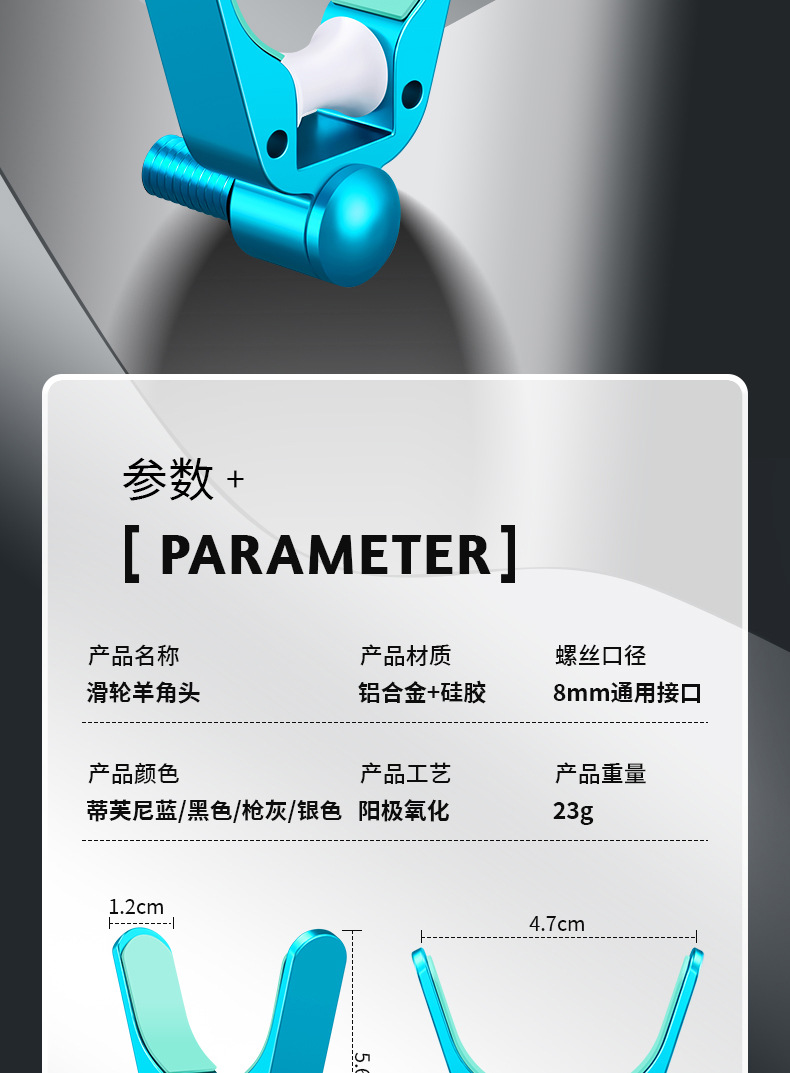 アルミ合金競技用ブラケット、ヘッドホーンヘッド、ターミナルラックロッドアクセサリー、釣り竿を傷つけないユニバーサル8mmプーリーシリコンパッド