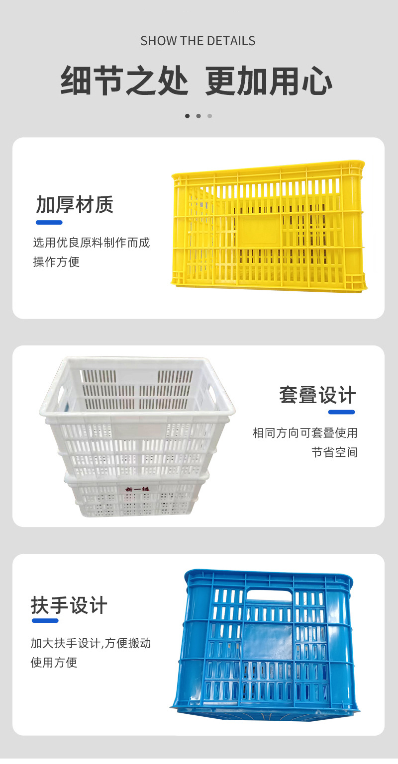 メーカー卸売の厚みのある肉バスケット、肉ポット、肉箱、ターンオーバーボックス、豚肉、鶏肉、冷蔵生肉バスケット、厚みのあるディスロケーションバスケット