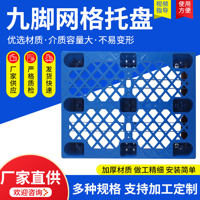 プラスチックパレット卸売九脚メッシュフォークリフトパレット倉庫防湿パレット厚いメッシュパレットブローパレット