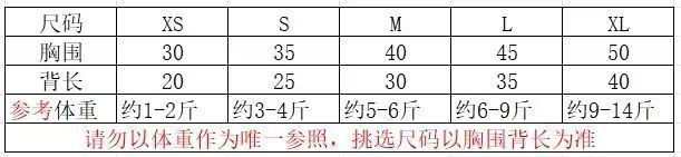 サイズ XS 胸30 後ろ20 【約<ne1>】,S 胸35 背中25 【約<ne1>】,M 胸40 背中30 【約2.5-3kg】,L 胸囲45 背中35 【約3.5-4.5kg】,XL 胸囲50 背中40 【約5-6.5kg】