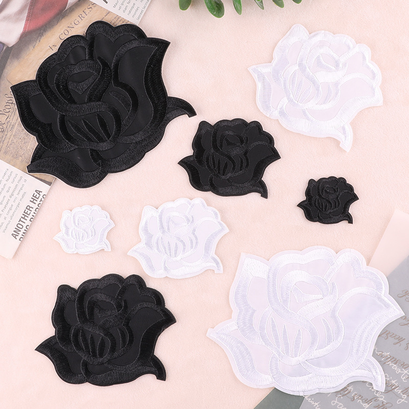 白いバラの花の布は大きいサイズを貼って、服のカバンを貼って服のズボンを飾ります。