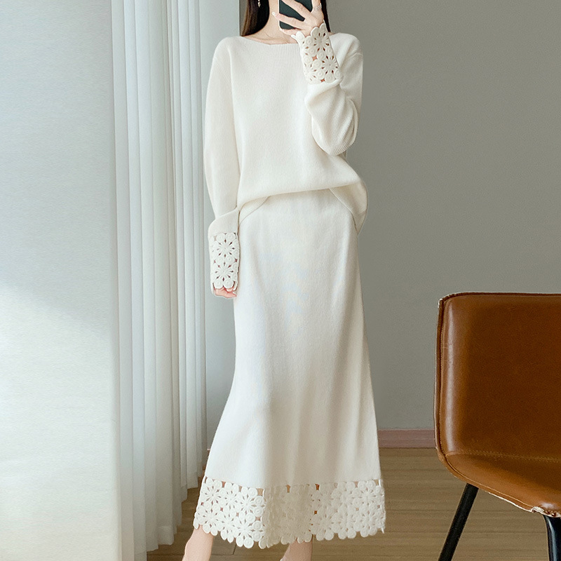 韩版宽松慵懒风羊毛衫2025秋冬季新款圆领毛衣百搭镂空针织套装裙