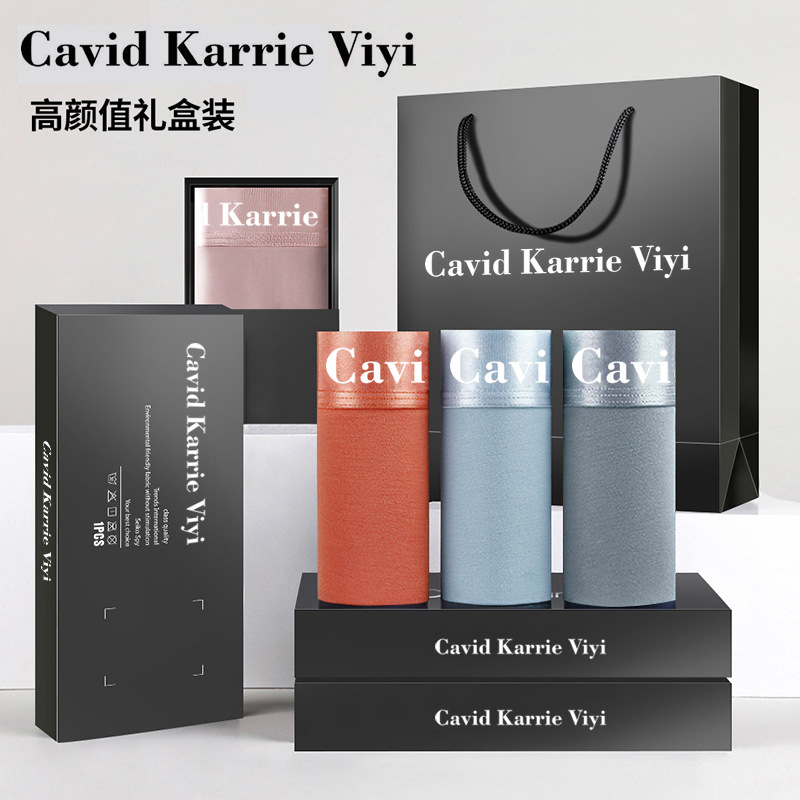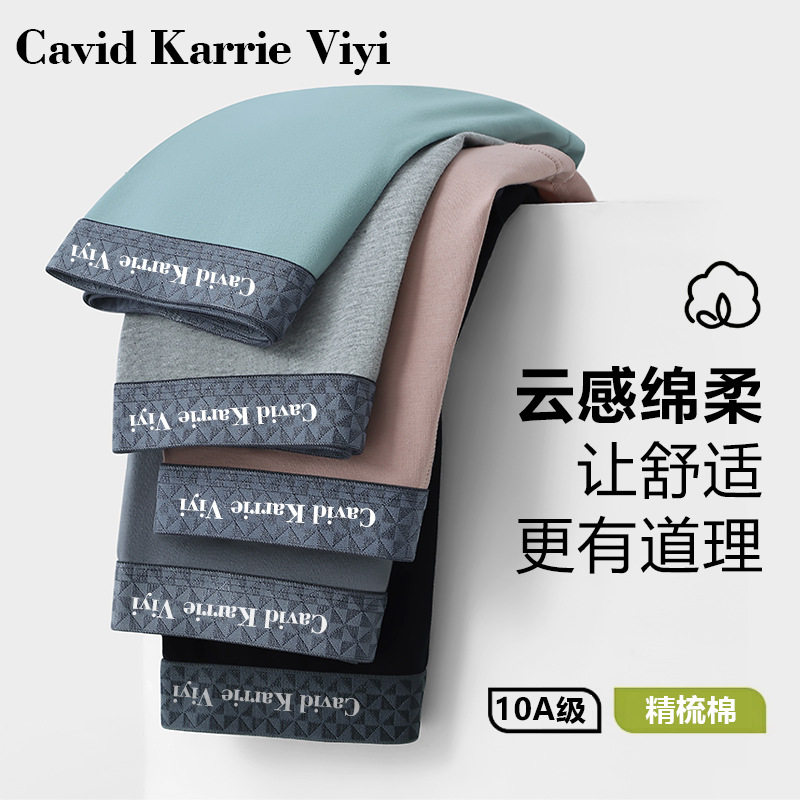 CavidKarrie Viyi纯棉花纹男士中腰宽松透气舒适抑菌四角平角裤头