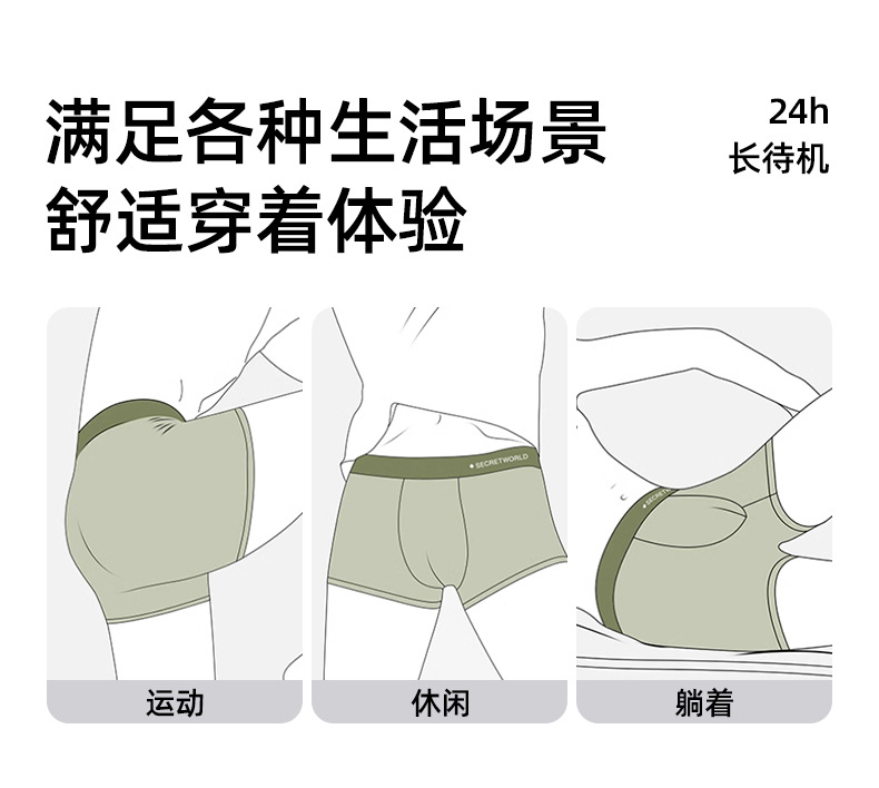 80支莫代尔男士内裤中腰抗菌凉感舒适四角中山男平角男生