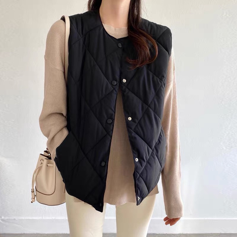 韓国chi秋冬小衆百合菱格保温袖なし綿衣ベスト馬甲女2023年新作綿服