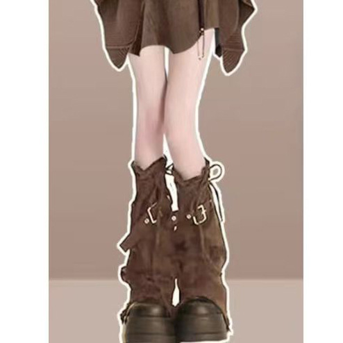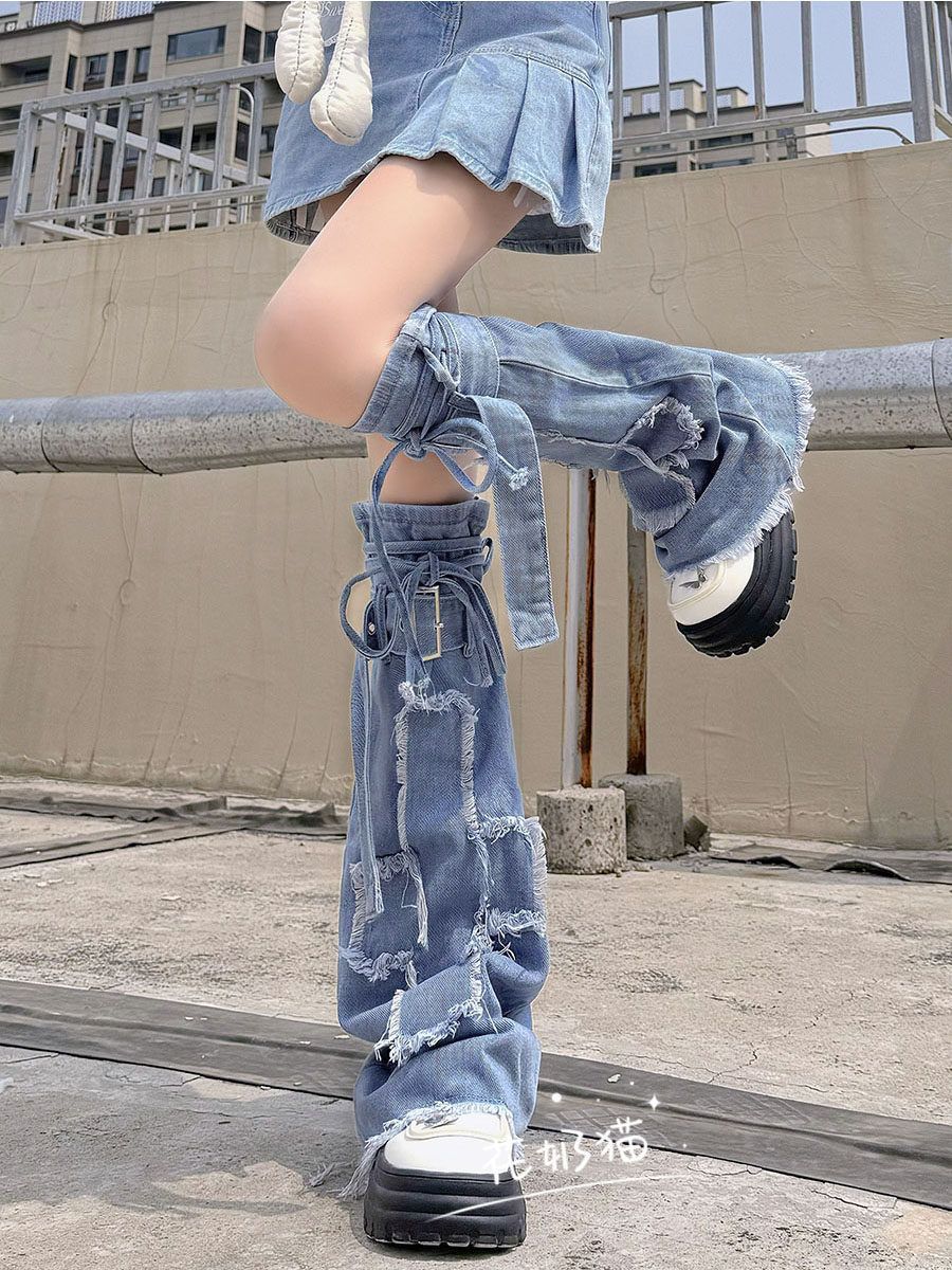 レッグカバー サブカルチャー パンク 調節可能なウォッシュデニムソックス カバーストラップ スイートクール フレアレッグカバー ブラウンレッグカバー トレンド