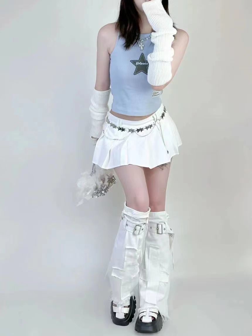 y2k レッグカバーホットガールデニムレッグカバージッパー調整バックルデザイン黒の痩身レッグソックスカバーパーソナライズされたデザイン