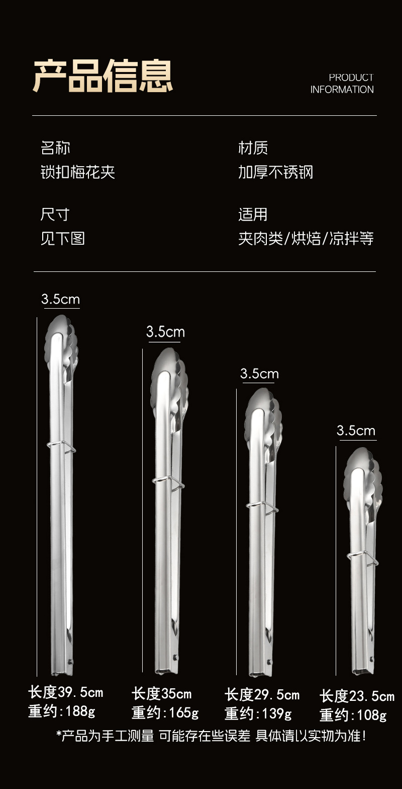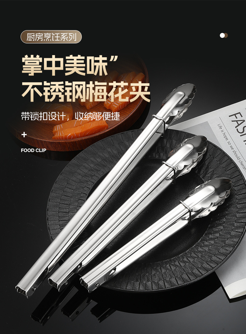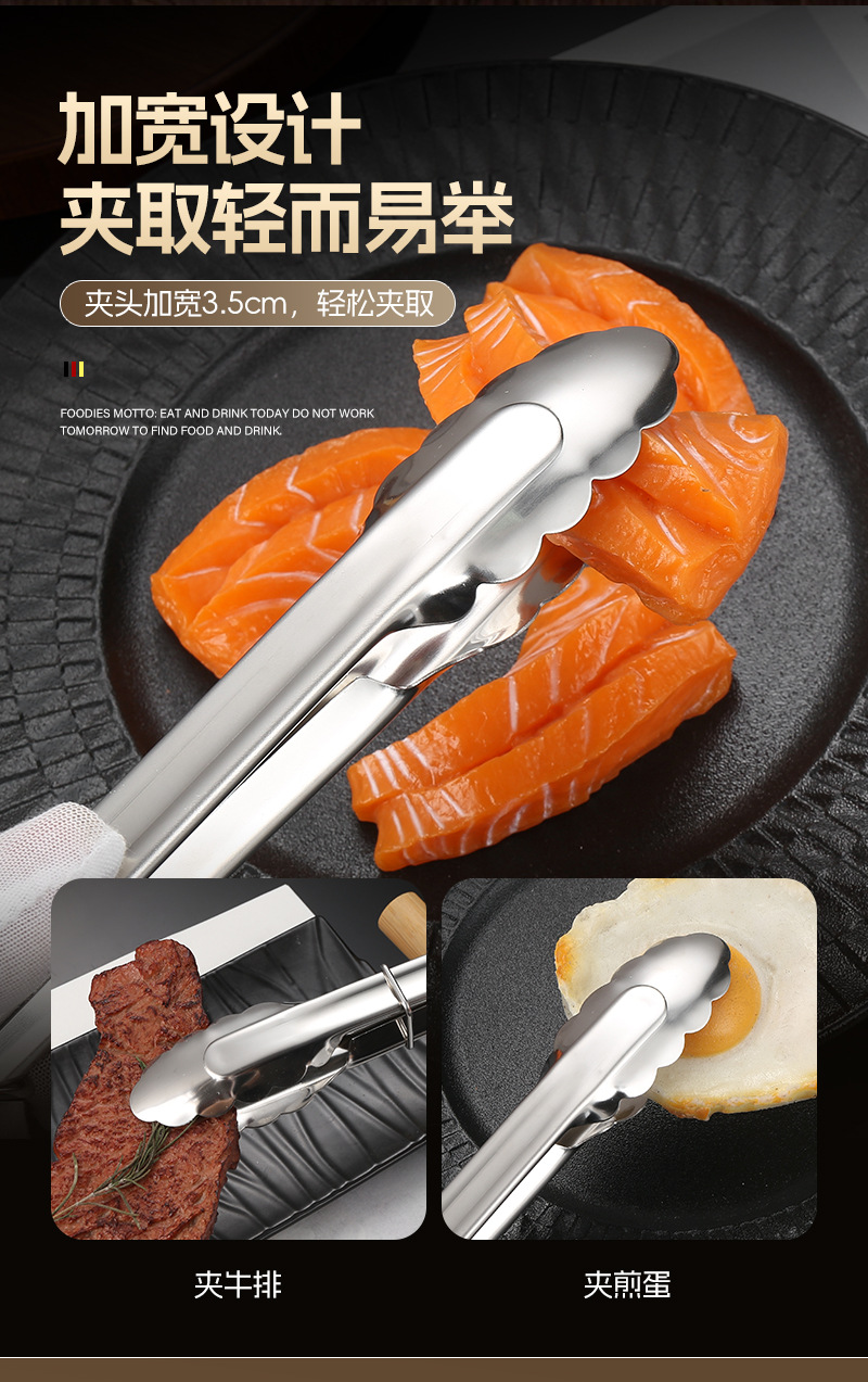 304ステンレス食品クリップ家庭用キッチンバーベキューステーキ食べ物クリップ麻辣热焼肉料理クリップパンクリップ