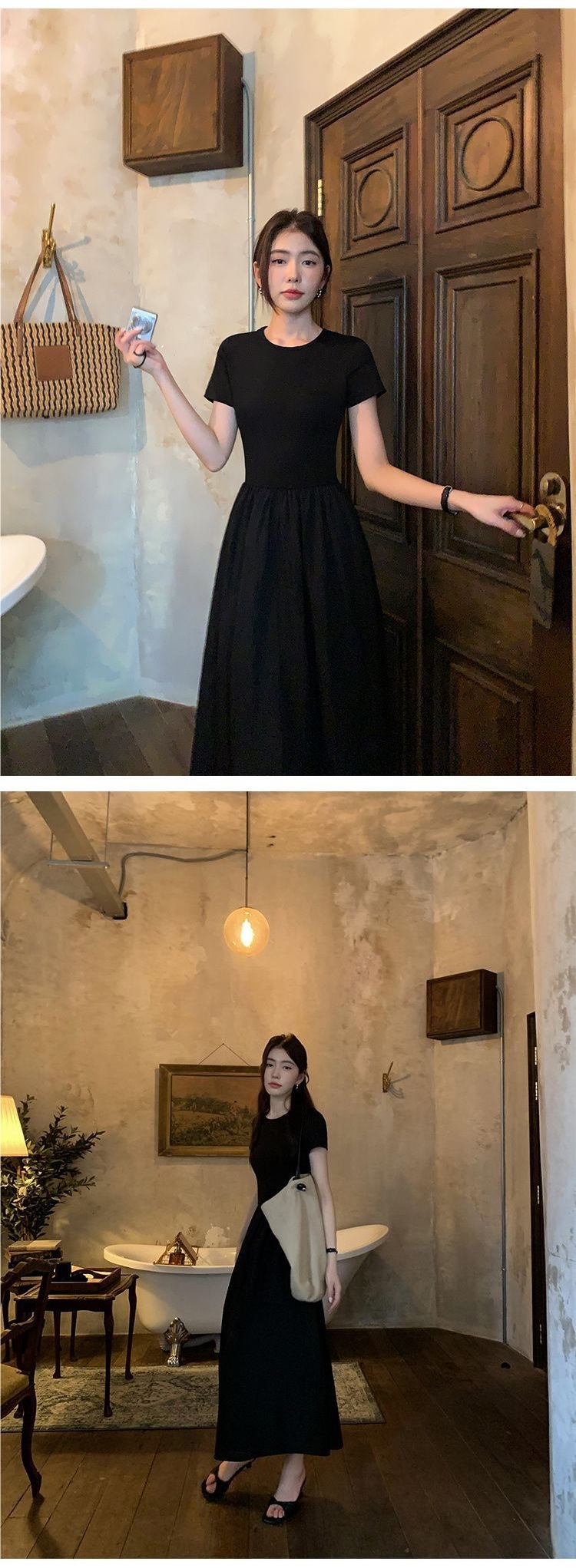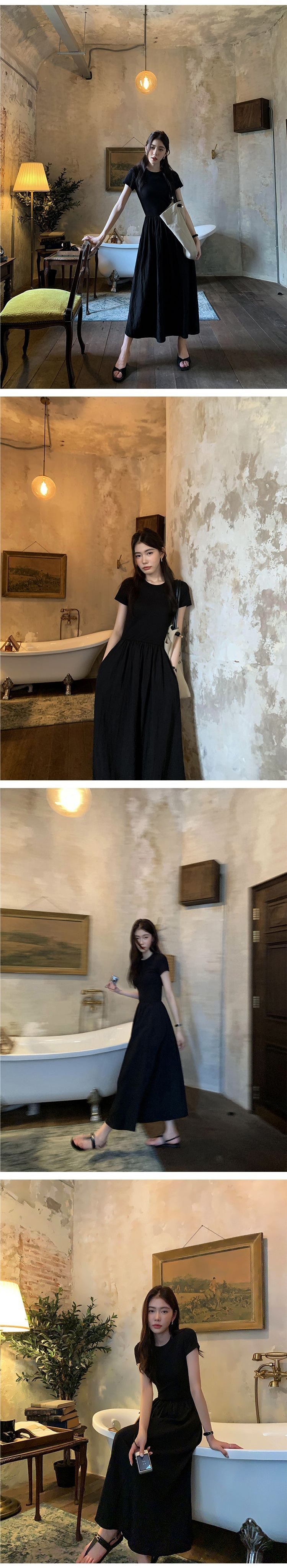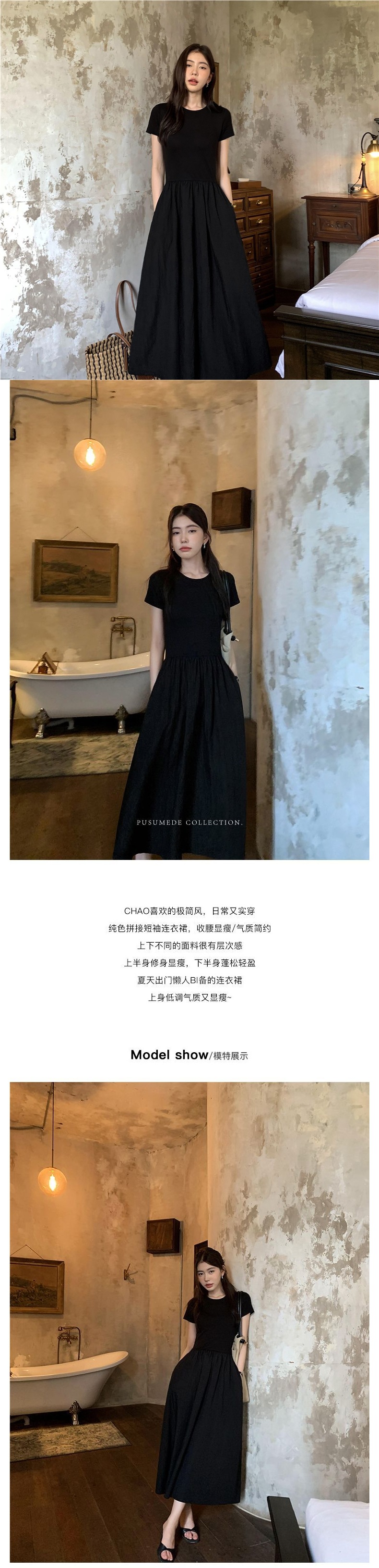 ファットMMプラスサイズの小さなフレグランスファッションドレス女性の夏の新しい気質ウエスト痩身ラウンドネックロングAラインスカート