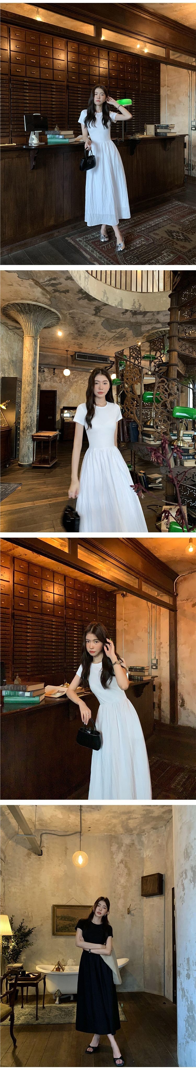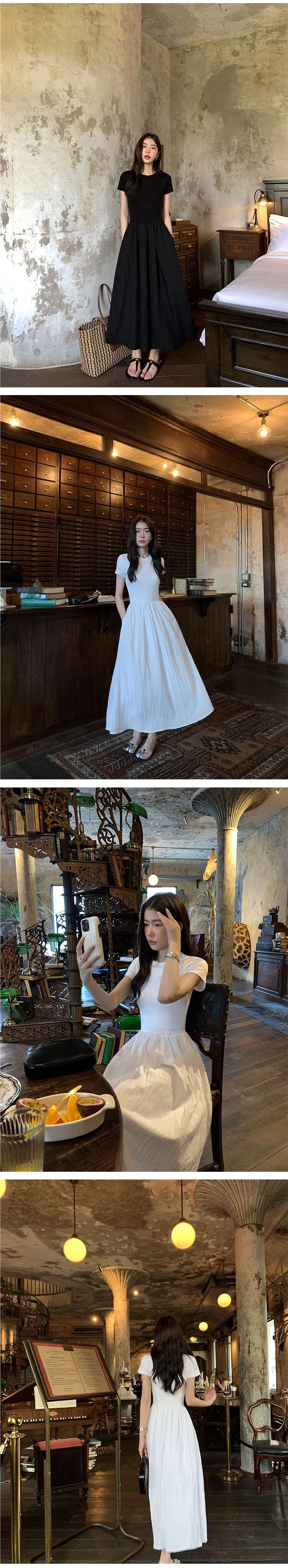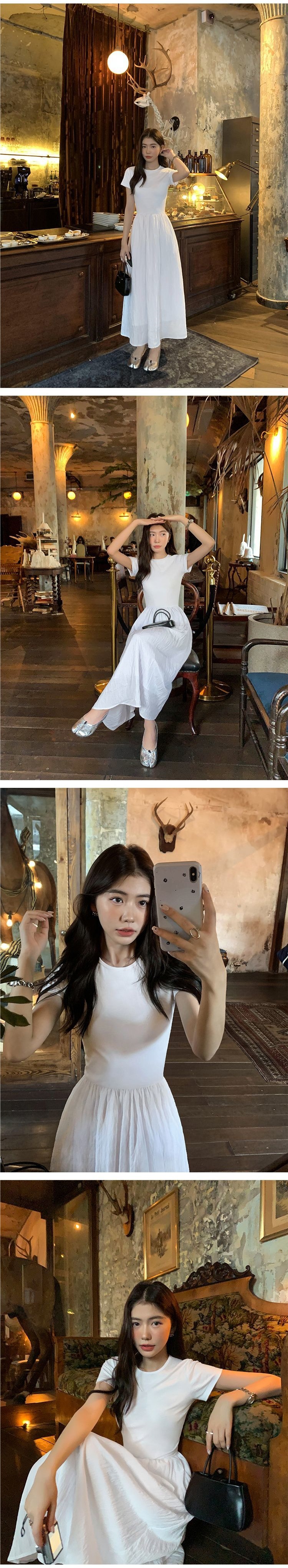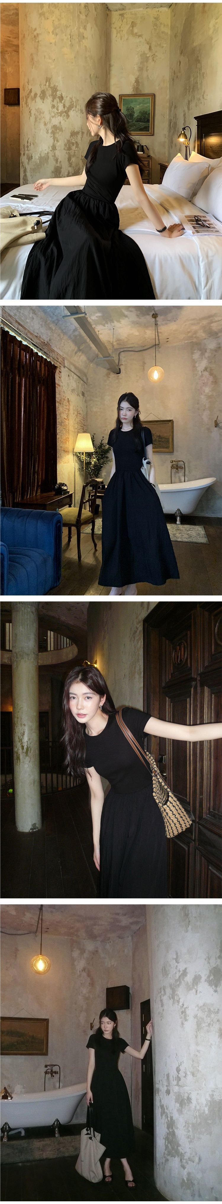 ファットMMプラスサイズの小さなフレグランスファッションドレス女性の夏の新しい気質ウエスト痩身ラウンドネックロングAラインスカート