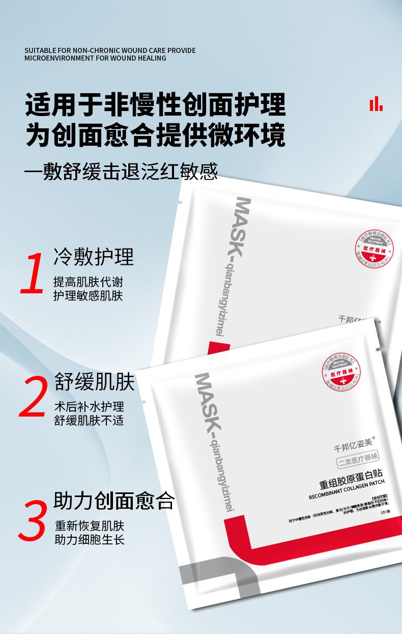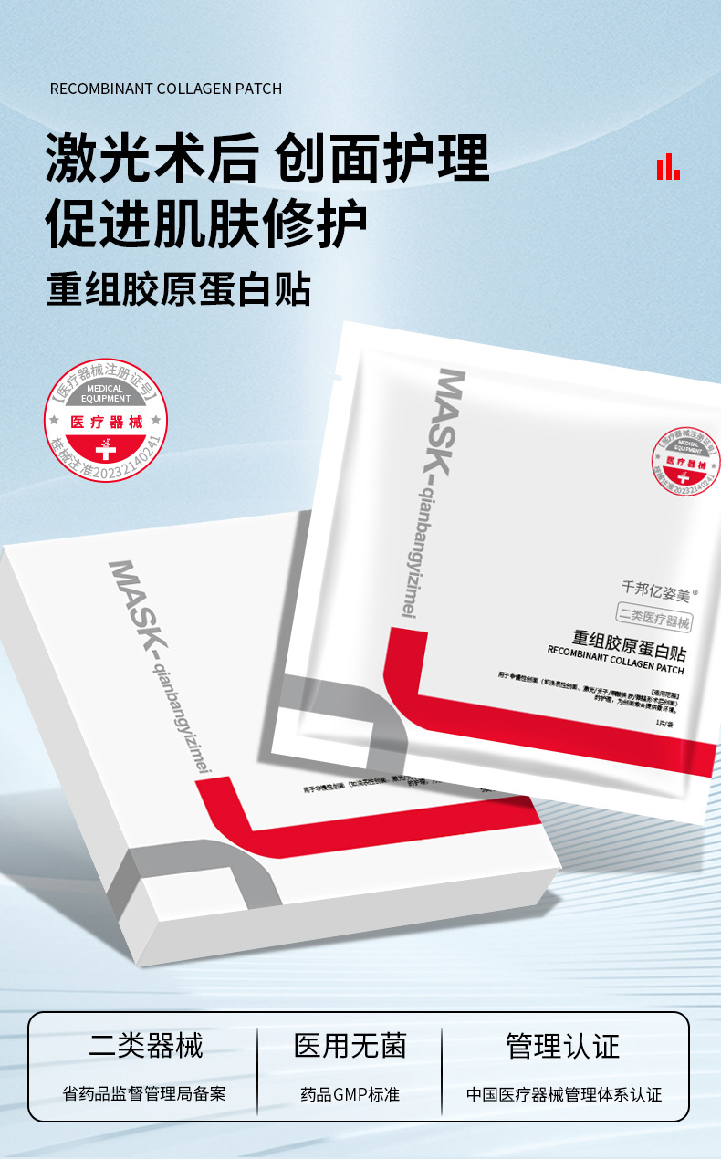 Qianbang Yizi Beauty 冷湿布マスクは、オフラインで病院限定、敏感肌の術後修復用の第二類マスクです。