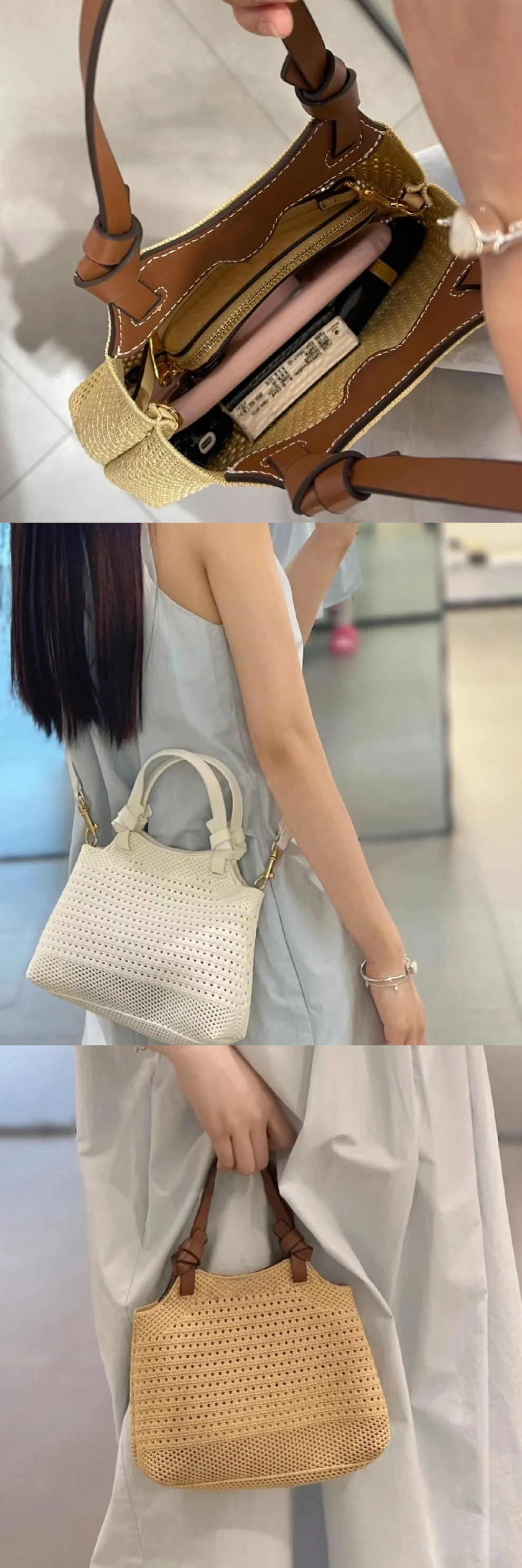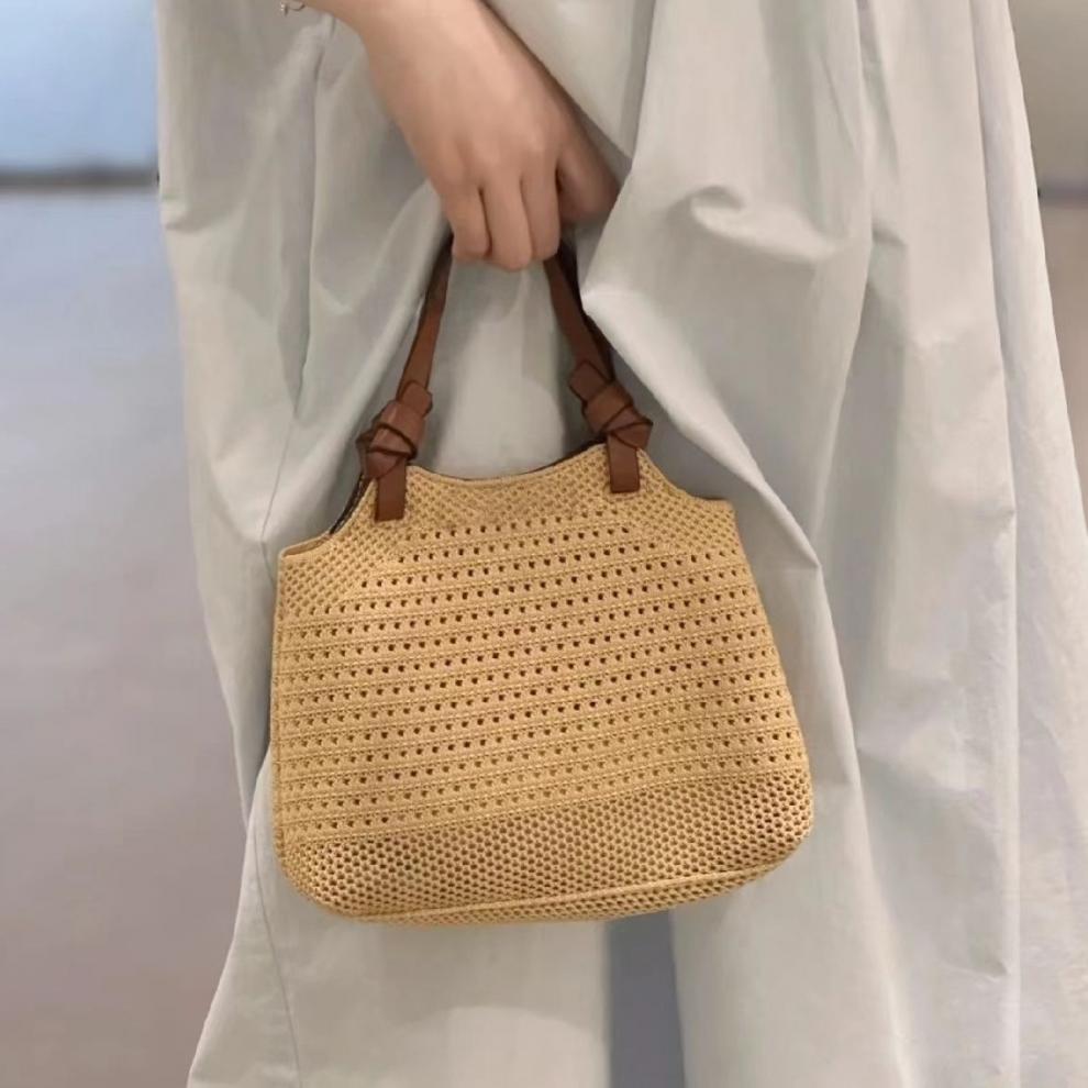 韓国シックなニッチレトロ織バッグ、高価値フォレストスタイルメッシュ中空ハンドバッグ、多用途の外出用クロスボディバッグ