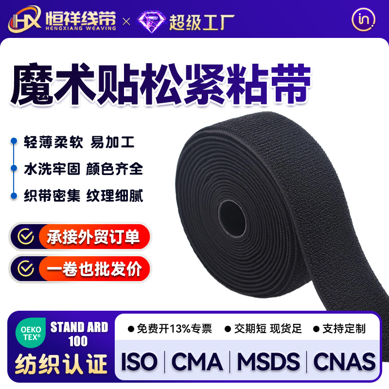 粘扣弹力松紧松紧带高弹性多色服装家纺辅料不抓毛魔术贴运动绑带