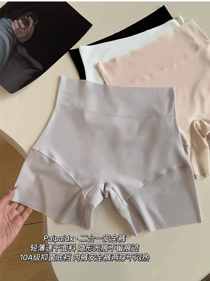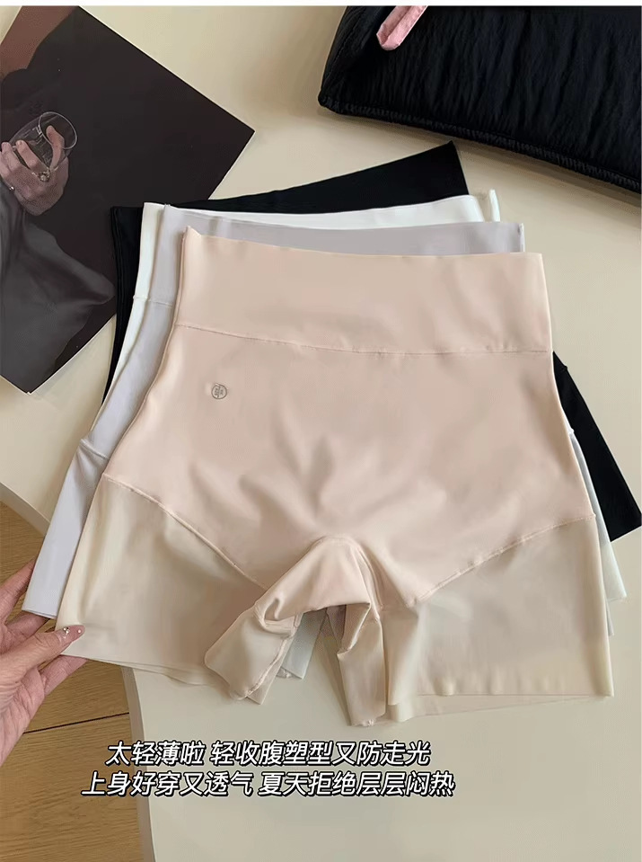 ツーインワン安全ショーツ夏 2025 薄型露出防止ハイウエストおなかコントロールシームレス下着女性のアイスシルク通気性女性