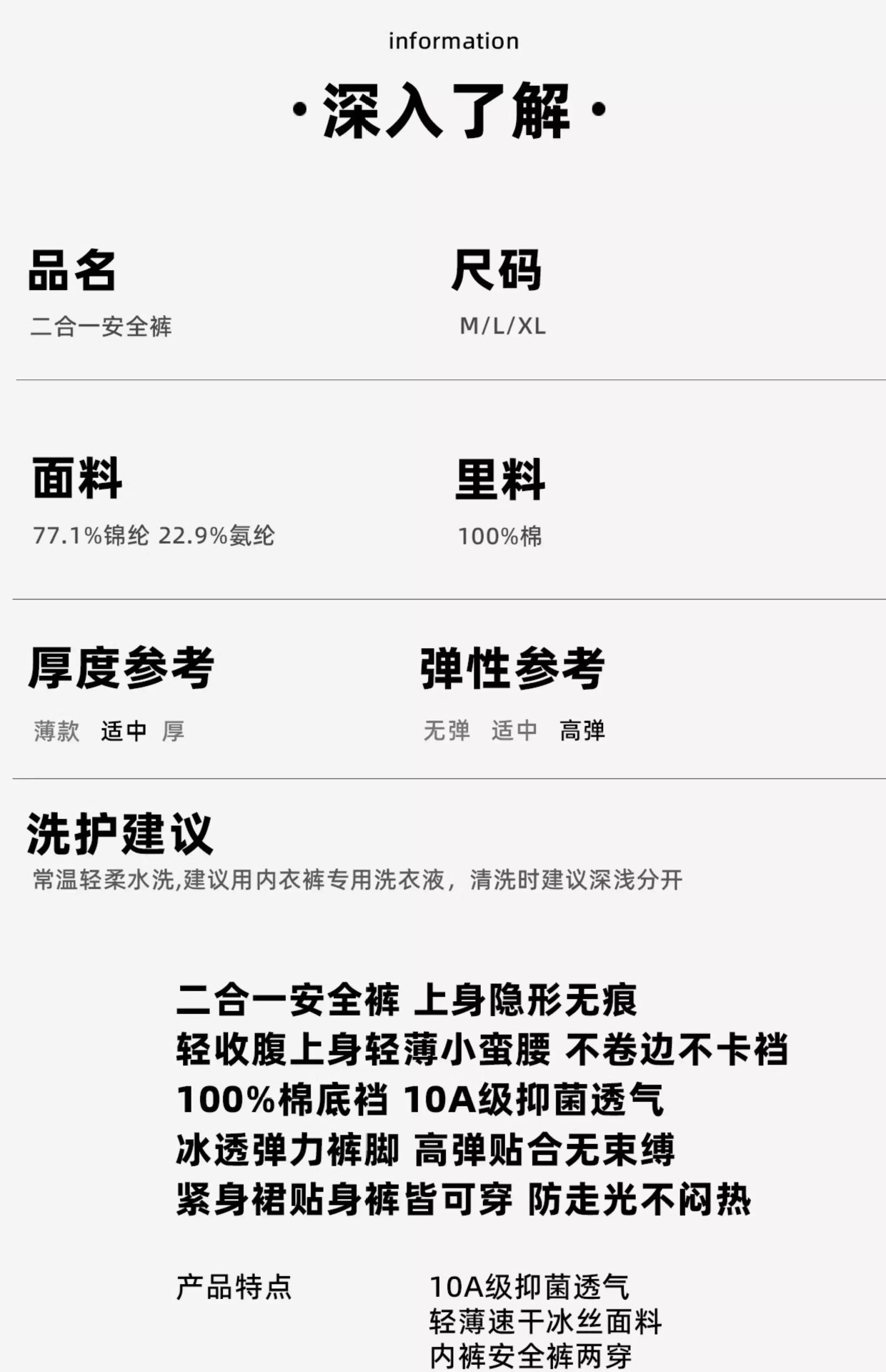 10A抑菌夏无痕女士安全裤防走光高腰平角内裤纯棉裆收腹裤三合一