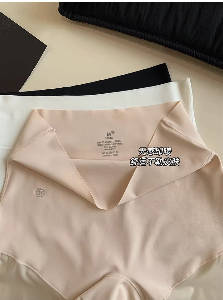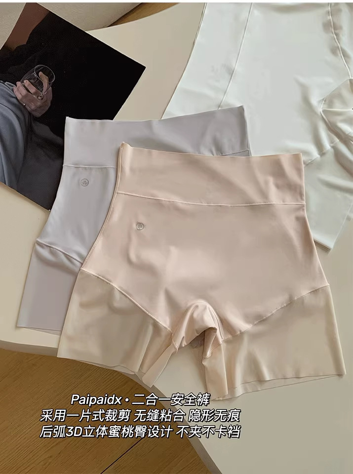 シームレス下着女性のアイスシルク通気性 2025 薄型露出防止ハイウエストおなかコントロールツーインワン安全ショーツ