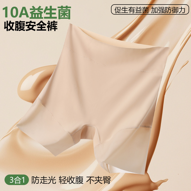 ハイウエストヒップリフティングおなかコントロールパンツアイスシルク下着女性の露出防止安全パンツシームレススリーインワンノンカールレギンス