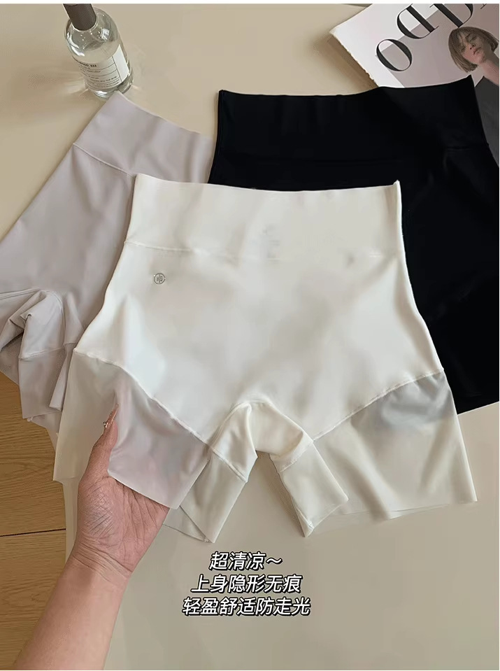 夏用シームレスハイウエストヒップリフティングとお腹引き締め安全パンツ、女性用メッシュ通気性アイスシルク下着、露出防止スリーインワンベース