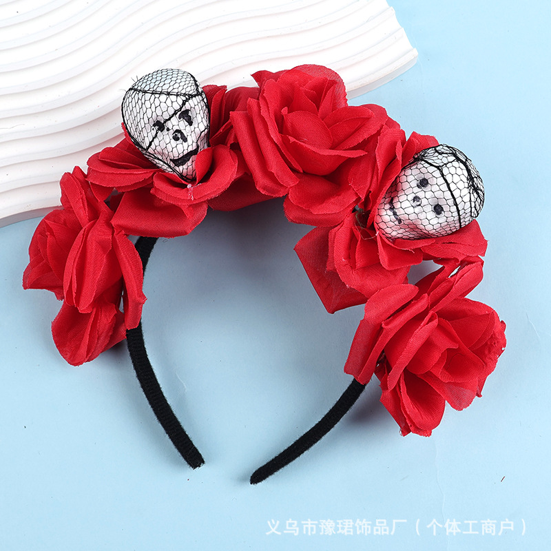 ハロウィンスカルフラワーヘアアクセサリーヨーロッパとアメリカのローズ死者の日ヘッドドレスゴーストフェスティバルパーティードレスアップ小道具ヘアフープ