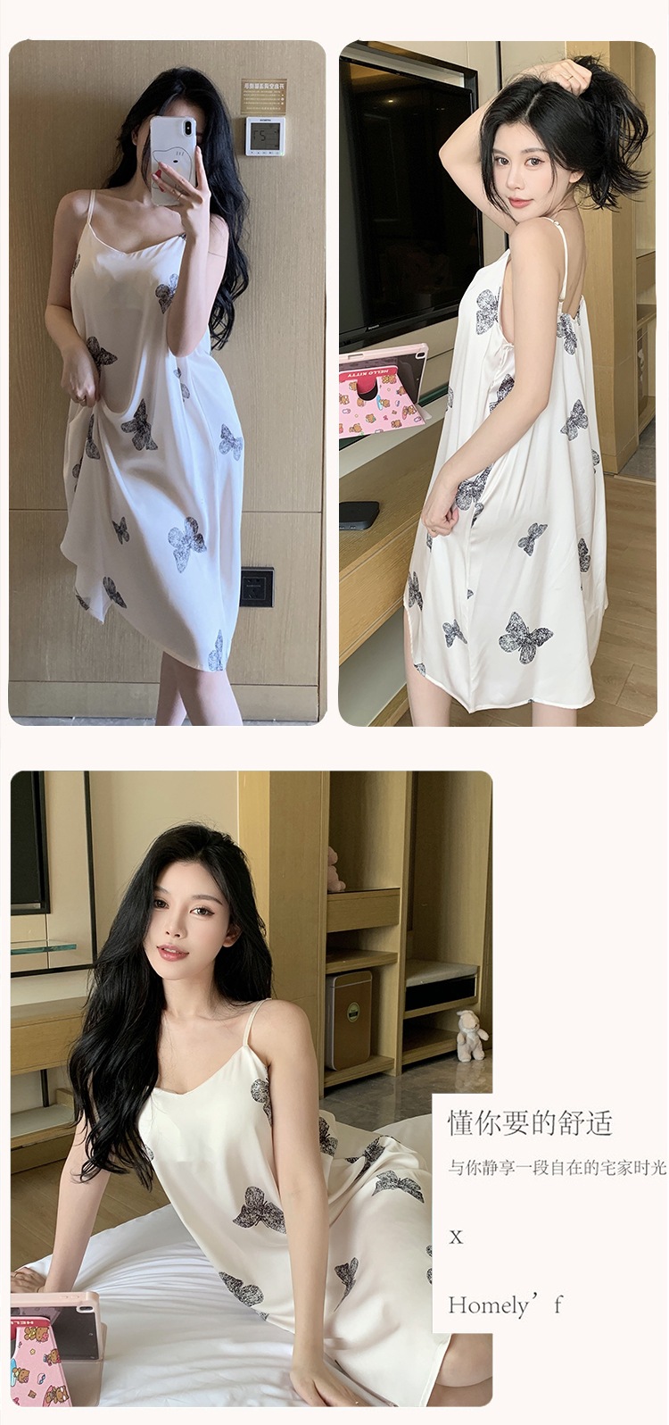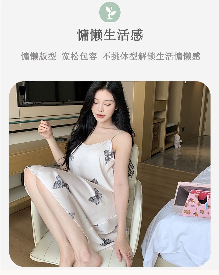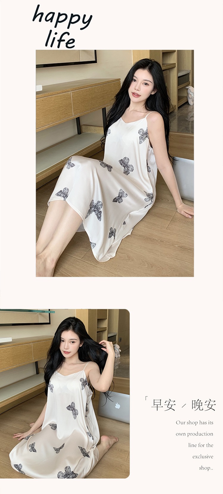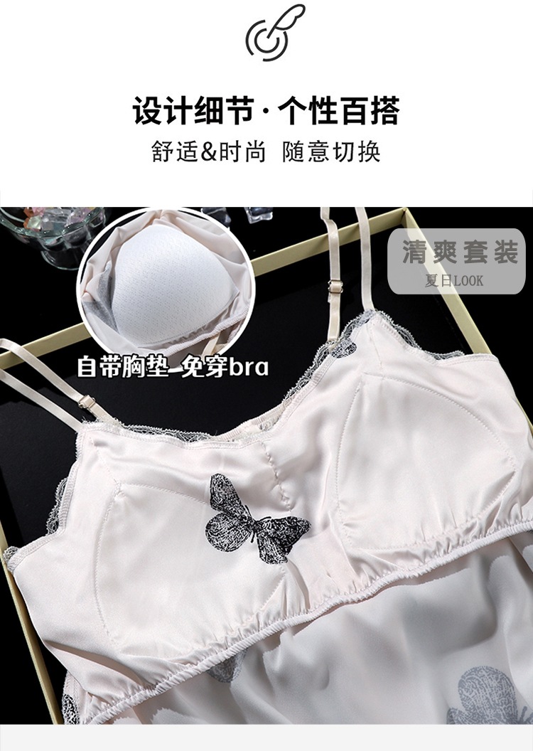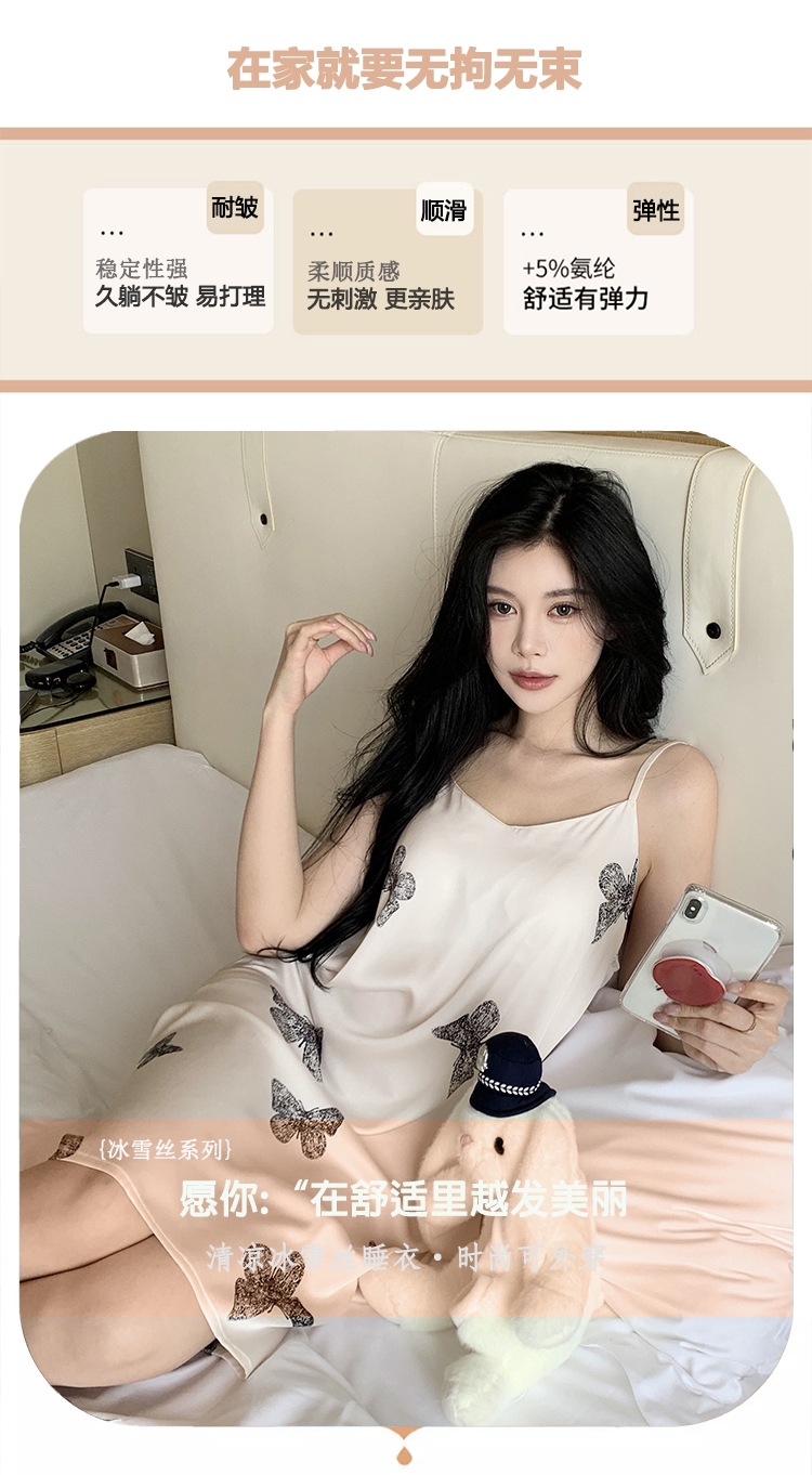 2025 新しい甘い夏の氷と雪のリボン胸パッドセクシーなサスペンダーパジャマ女性のホームウェアスカートホームウェア
