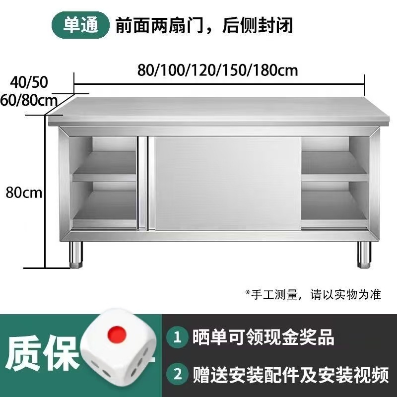 厚みのある 304 ステンレス鋼の作業台キッチンキャビネット商業レストランテーブルホームコンソール引き戸