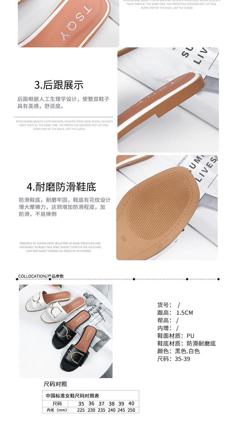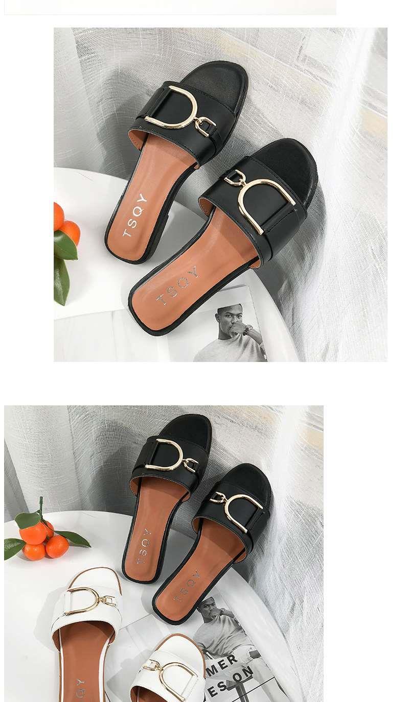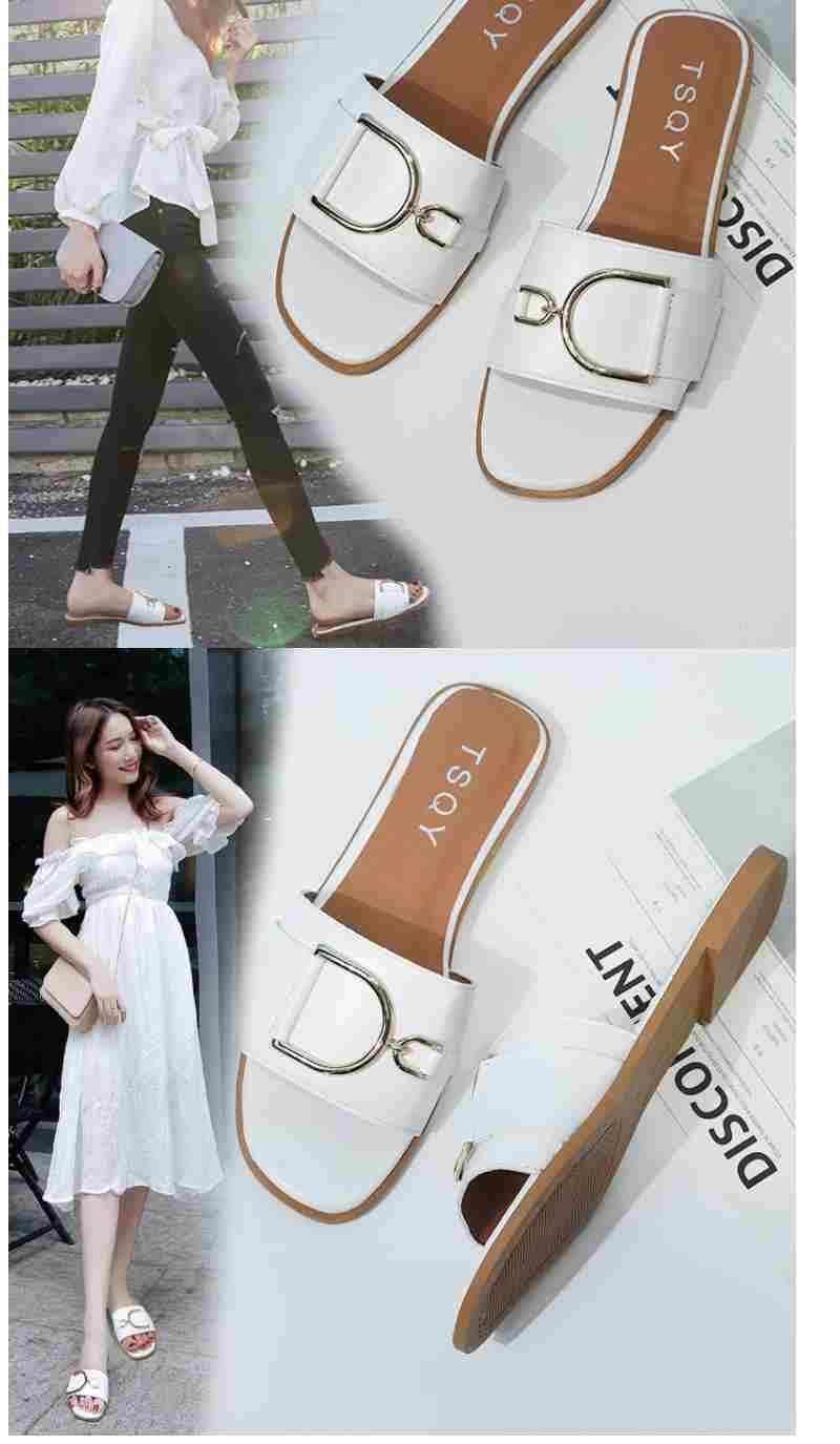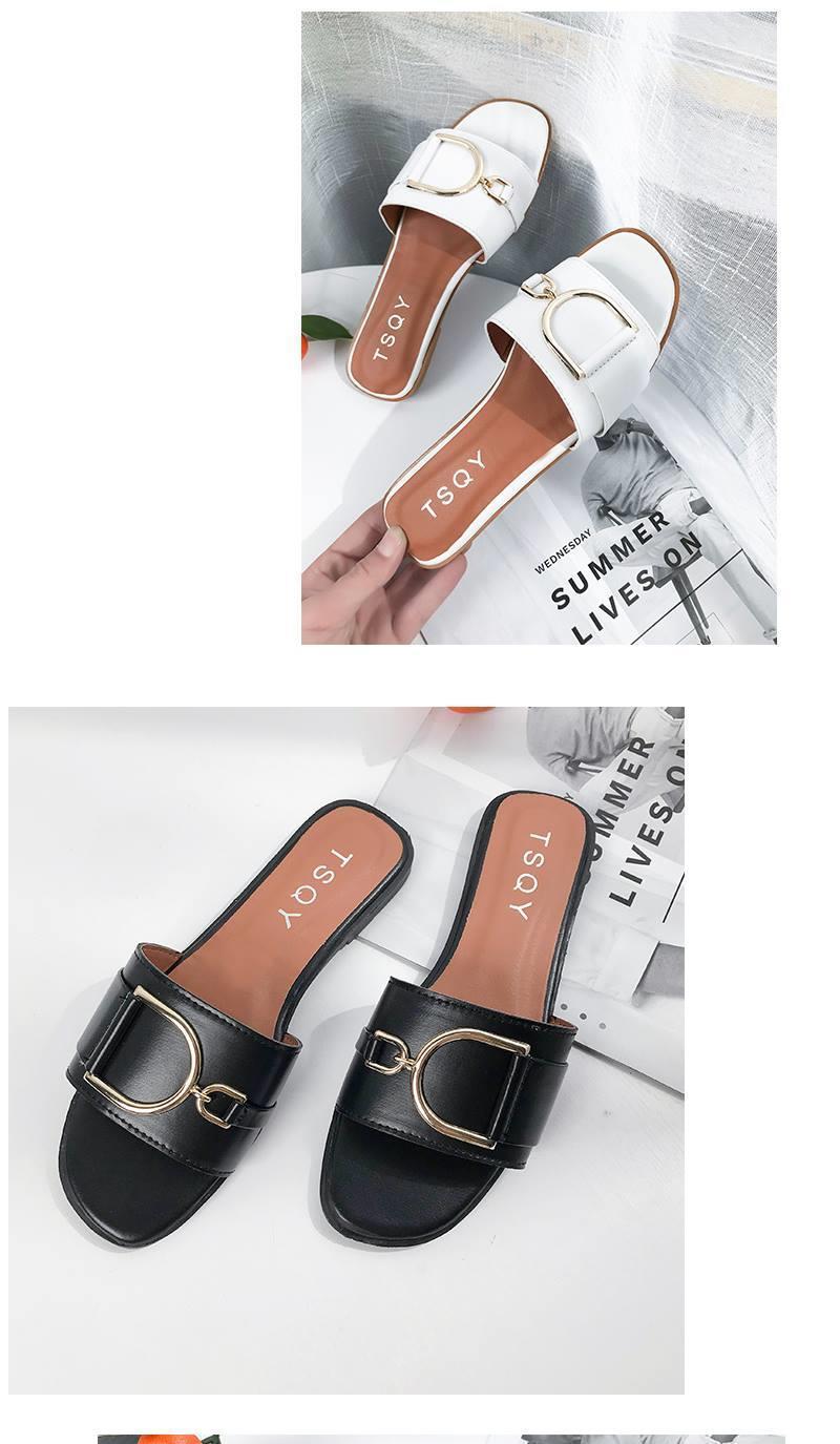 クロスボーダーレディースシューズレディース新しいファッションスリッパクラシックな気質多用途ソリッドカラーメタル装飾スクエアトゥフラットサンダル