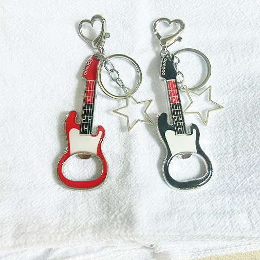人気のクロスボーダーギターボトルオープナーキーホルダーヨーロッパとアメリカの合金接着剤プロセスパーソナライズされたデザインのホットガールペンダント