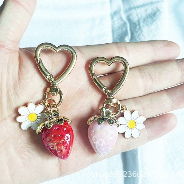 国境を越えたアマゾンの人気のかわいいイチゴの花のキーホルダーピーチハート型キーホルダーガールバッグチャーム卸売