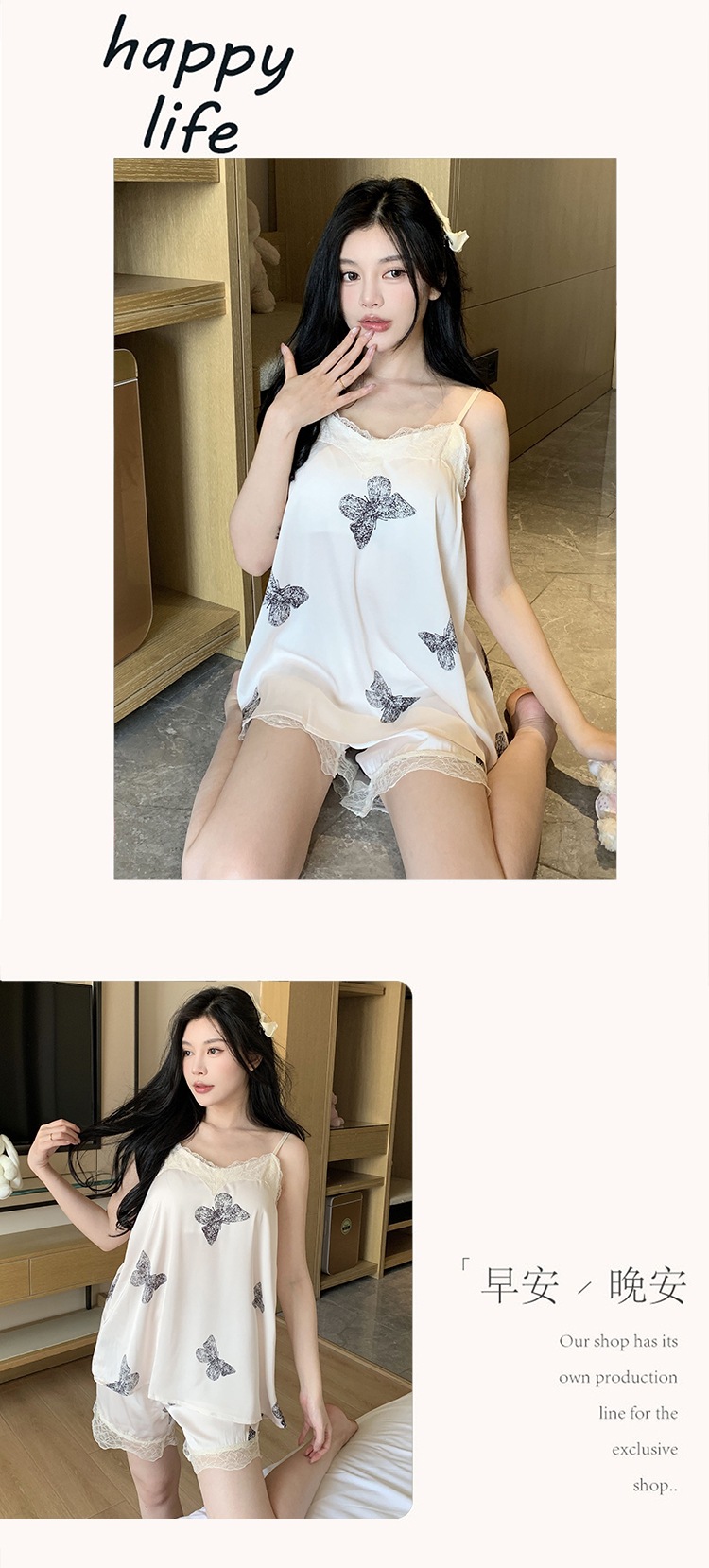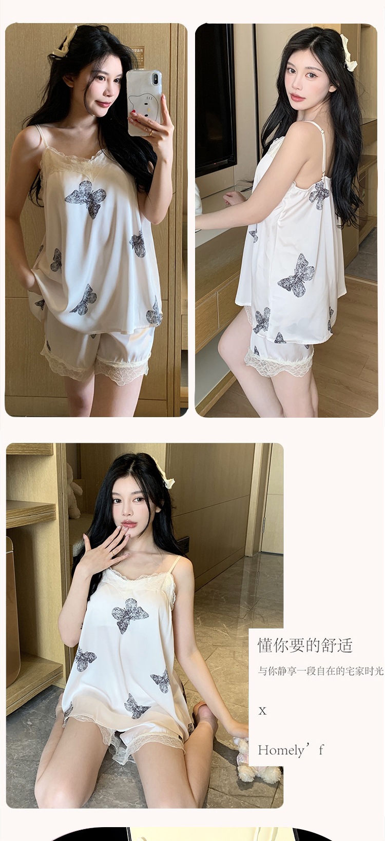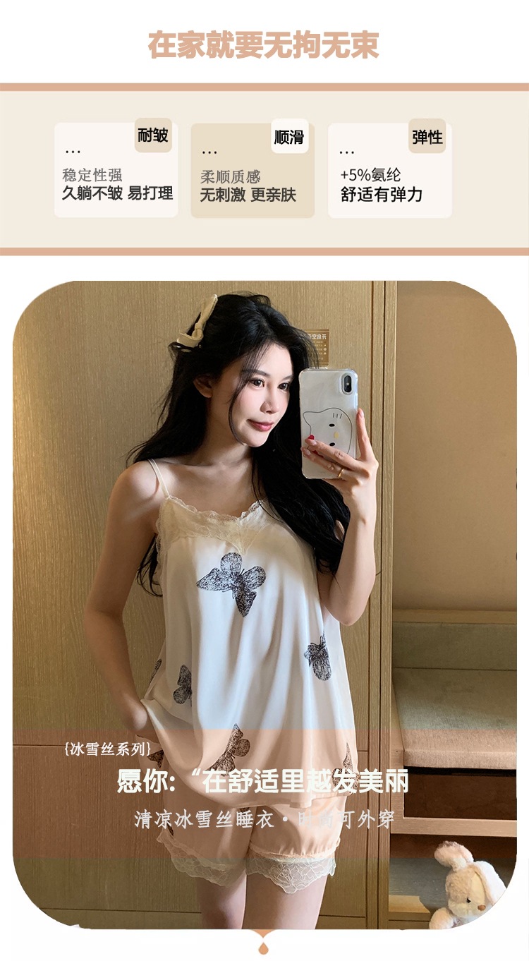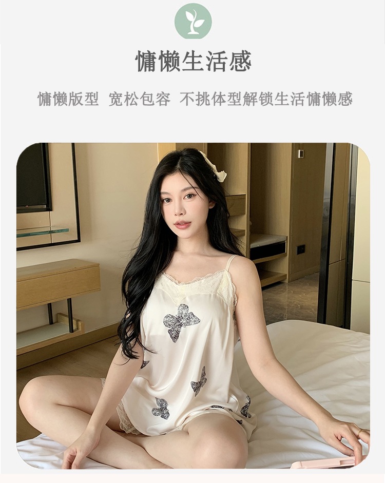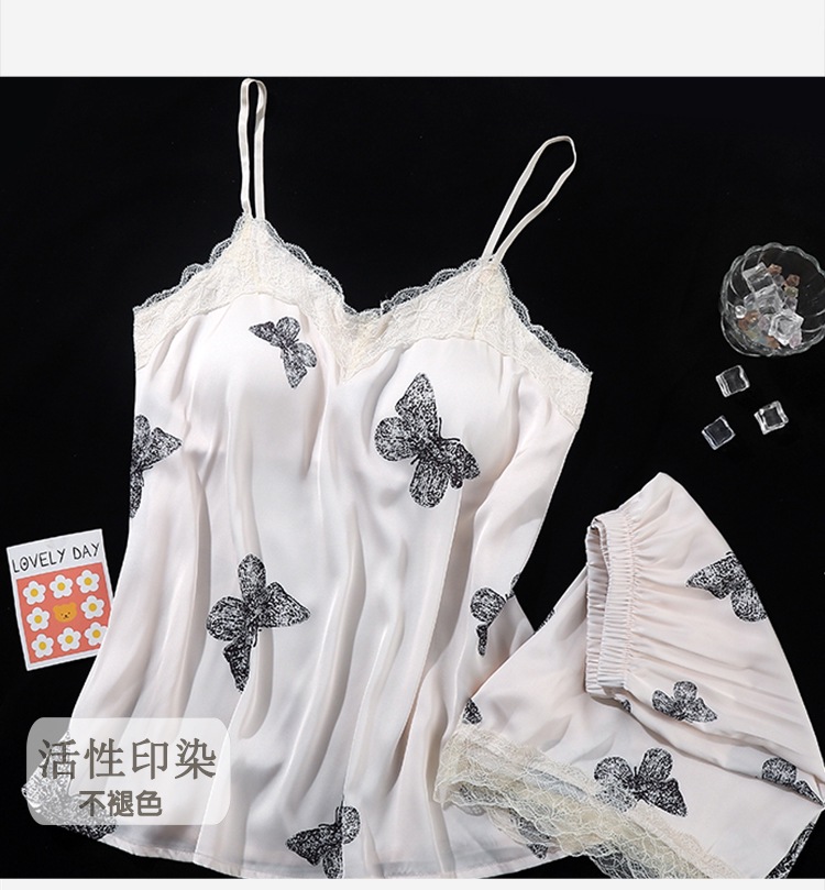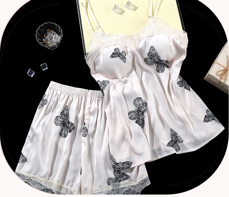 Qiaode Mei (202 ロット) 夏氷と雪のシルク (胸パッド付き) セクシーなサスペンダーショーツパジャマ女性のスーツホーム服