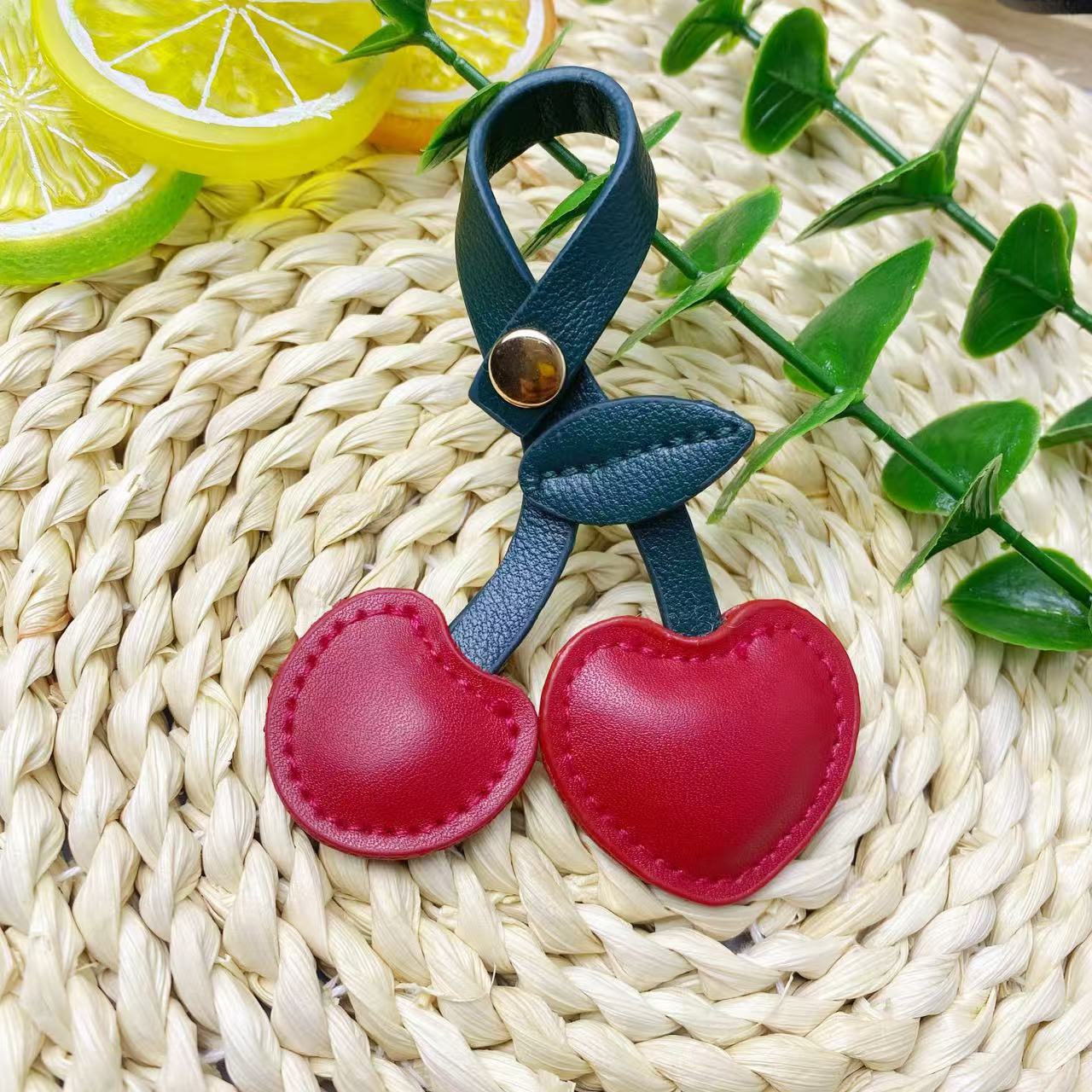 メーカー卸売レザーチェリーバッグペンダント、絶妙な愛の綿充填レトロ多用途ハンドバッグアクセサリー