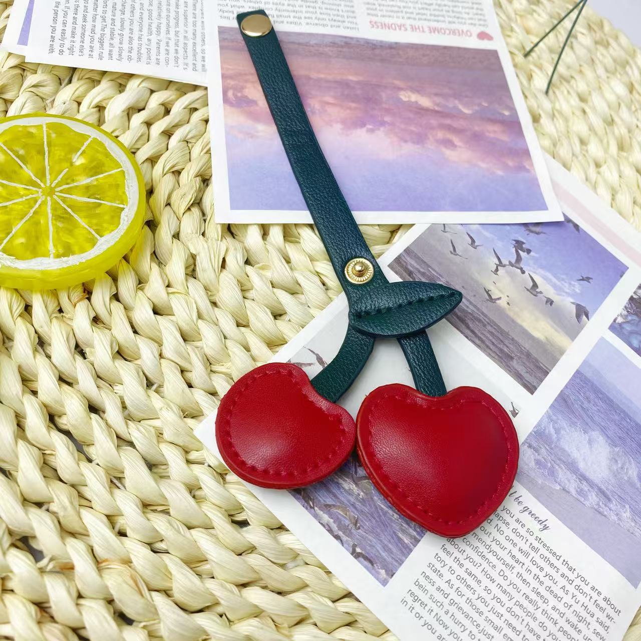欧美田园风格樱桃车厘子钥匙扣皮革挂件创意ins女书包包挂饰饰品