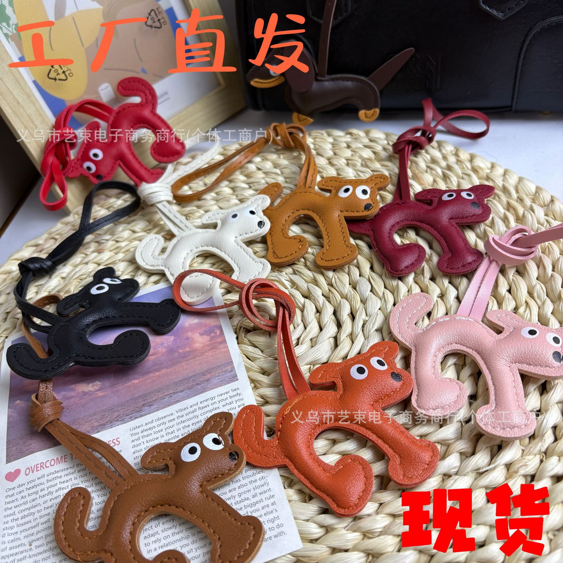 革製の大きな目と弓状の背を持つ犬のPUキーホルダー、クリエイティブなバッグ用立体ペンダント、ギフト卸売、トレンディな装飾品