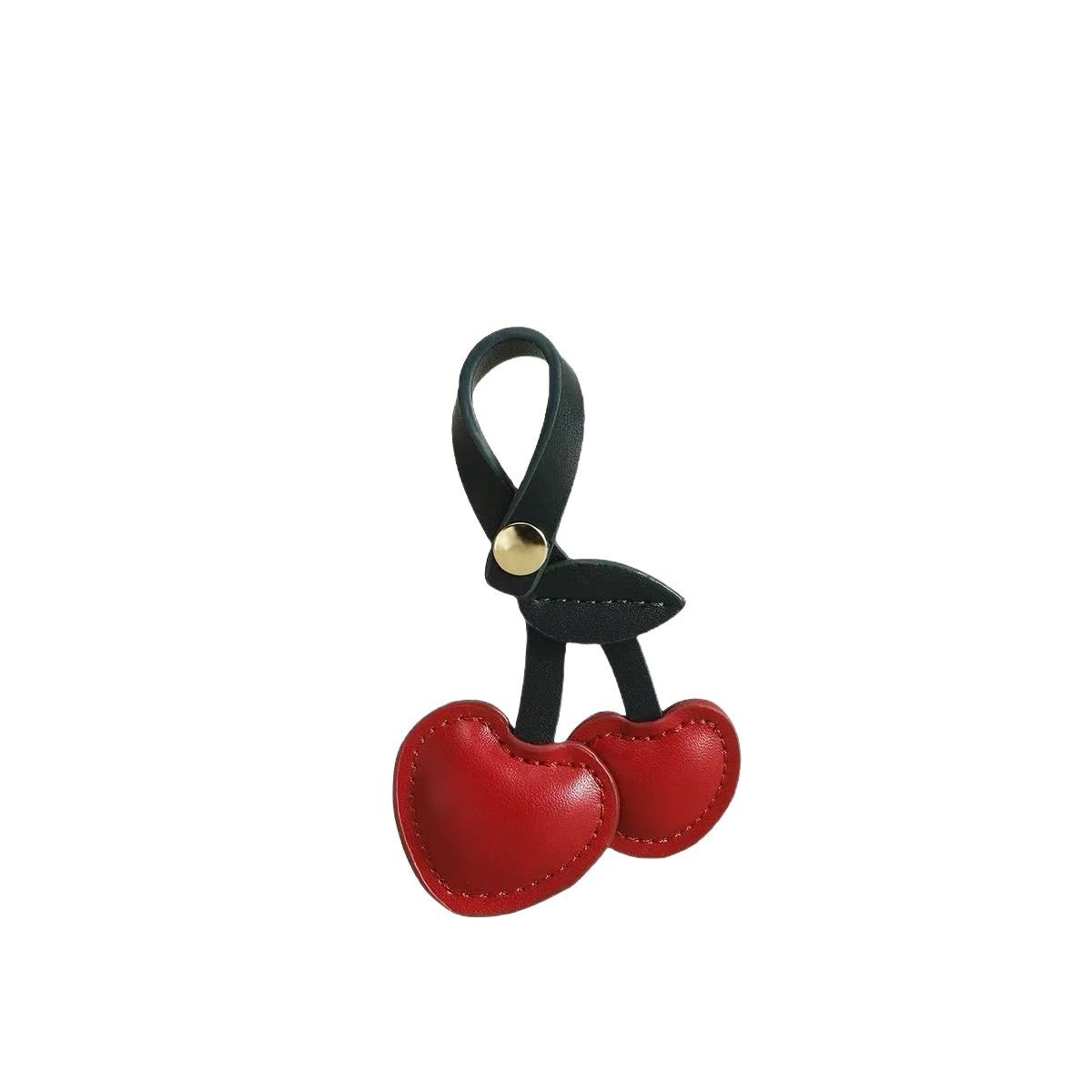 ヨーロッパとアメリカのレトロなチェリーキーホルダーペンダントPUレザーバッグペンダント装飾かわいい立体ピーチハートガールハート