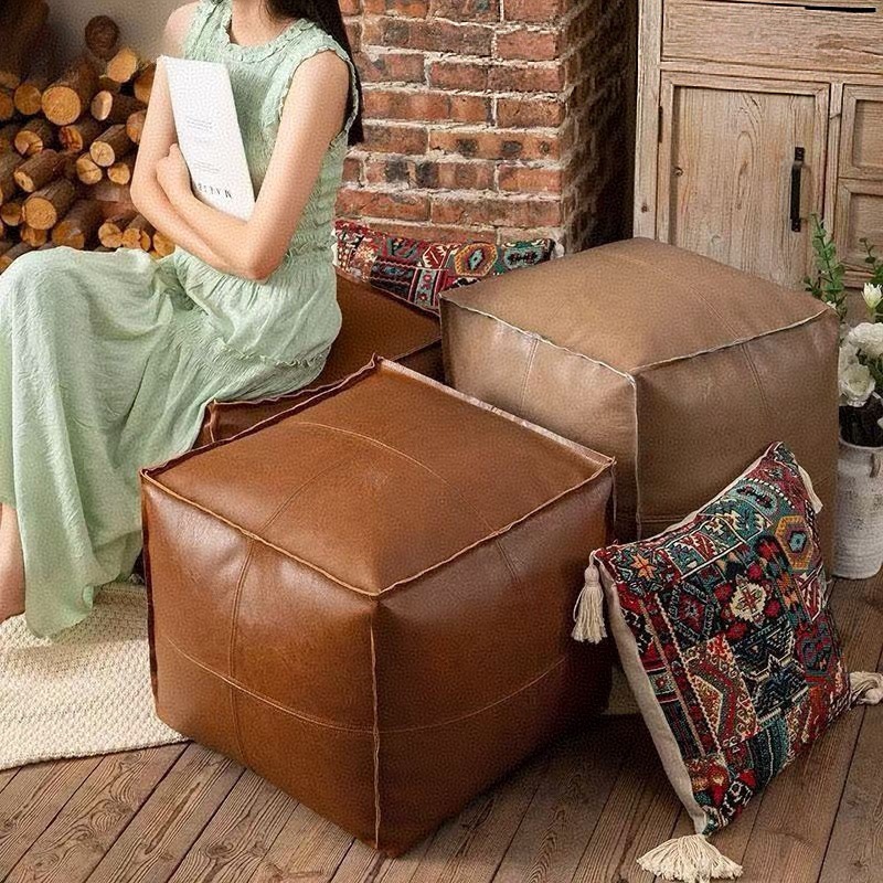 怠け者用の座りクッション、古い衣類の収納ソファ、ローチェア、リビングルームの出窓、革製のスツール、革製の布団クッション、畳