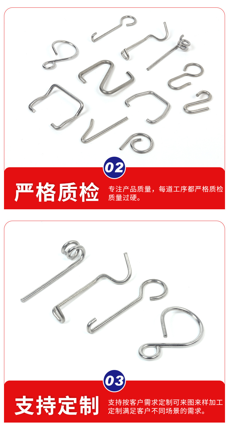304ステンレス鋼線成形、鉄線曲げ成形、フック精密非標準異形スプリング加工