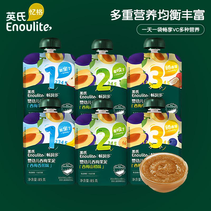 英氏果泥多口味水果蔬菜泥婴幼儿6个月宝宝西梅香蕉青提苹果泥
