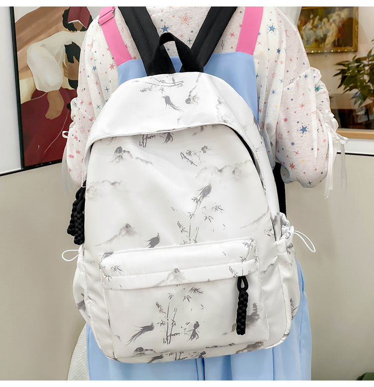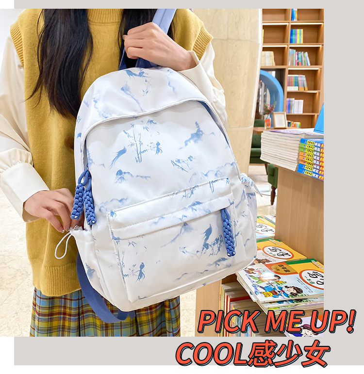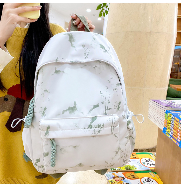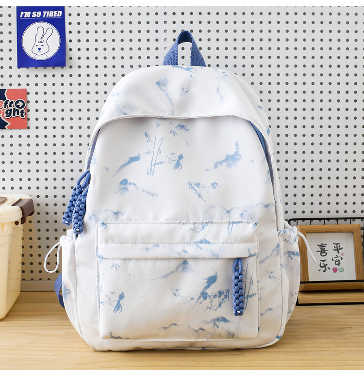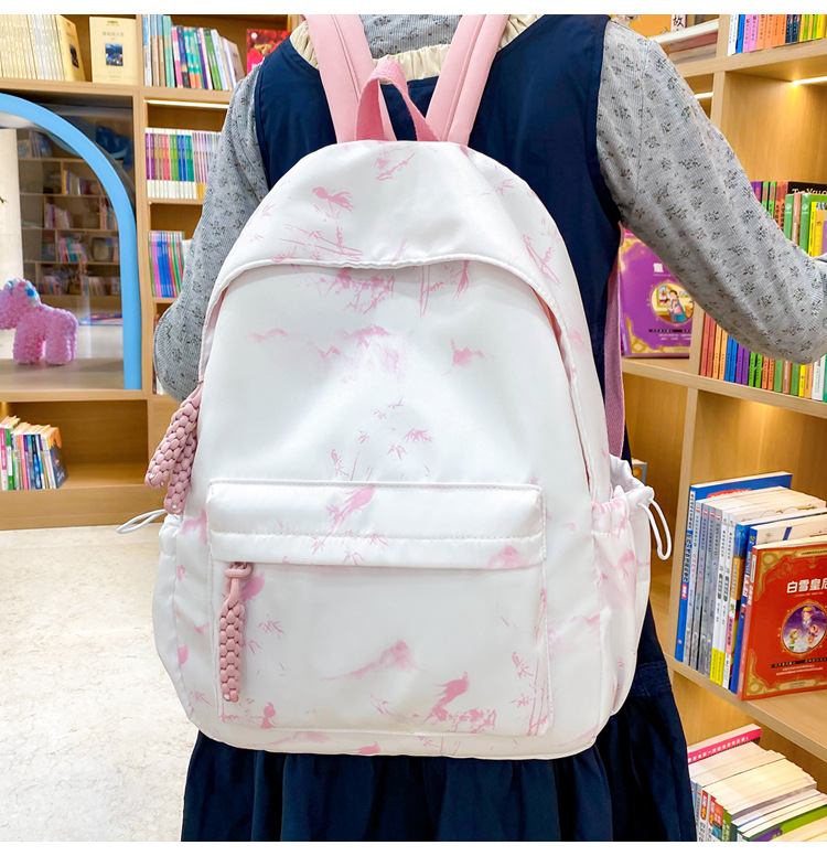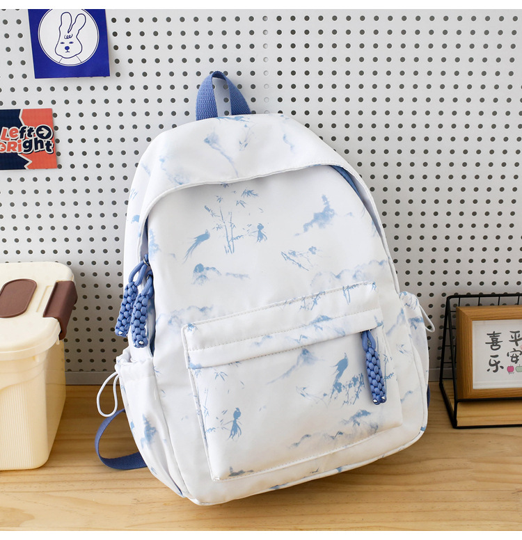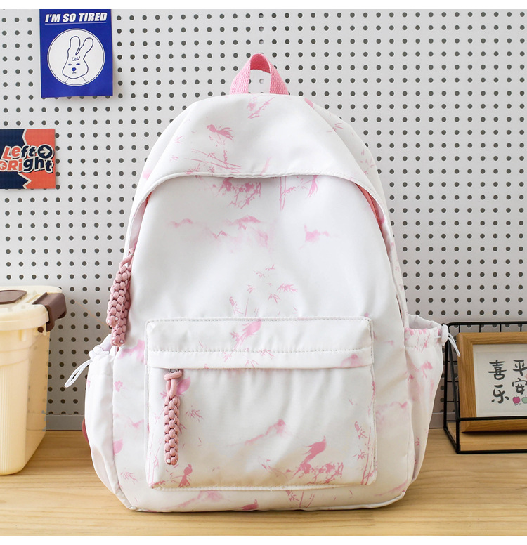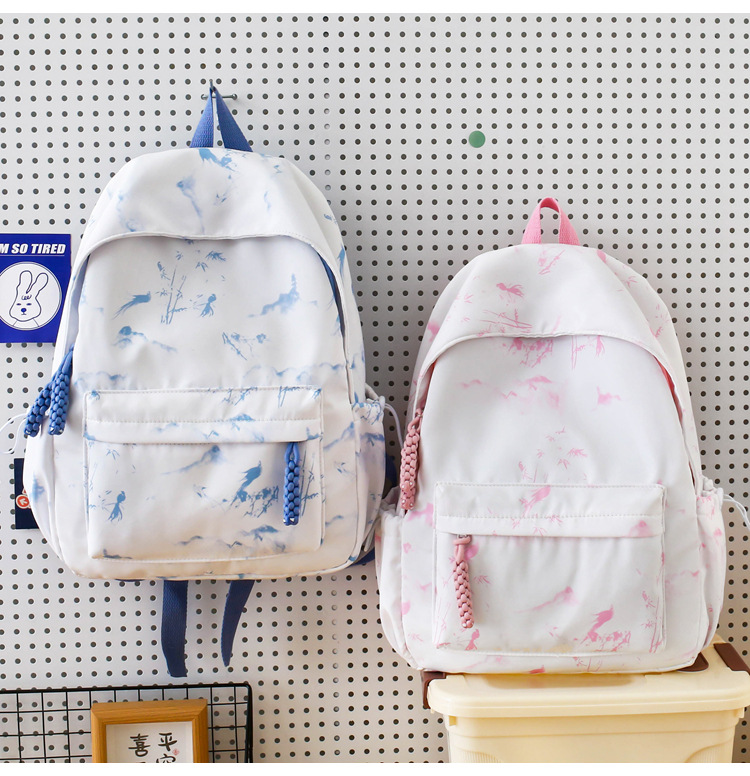 新学期シーズンの甘くてファッショナブルなバックパック、新しい大容量の学生スクールバッグ、絞り染めプリントの中国風文学バックパック