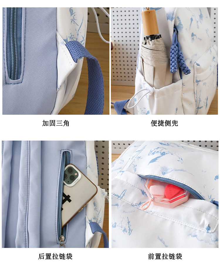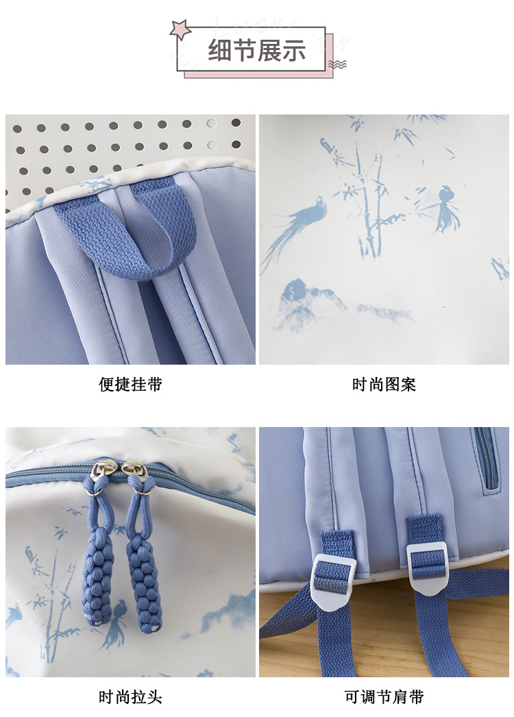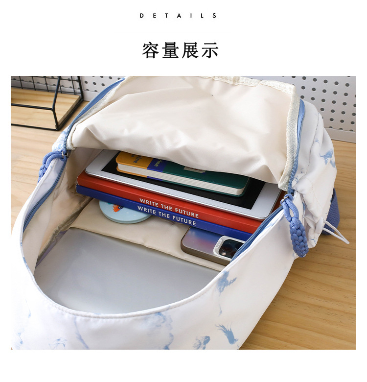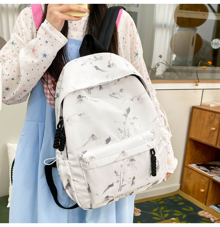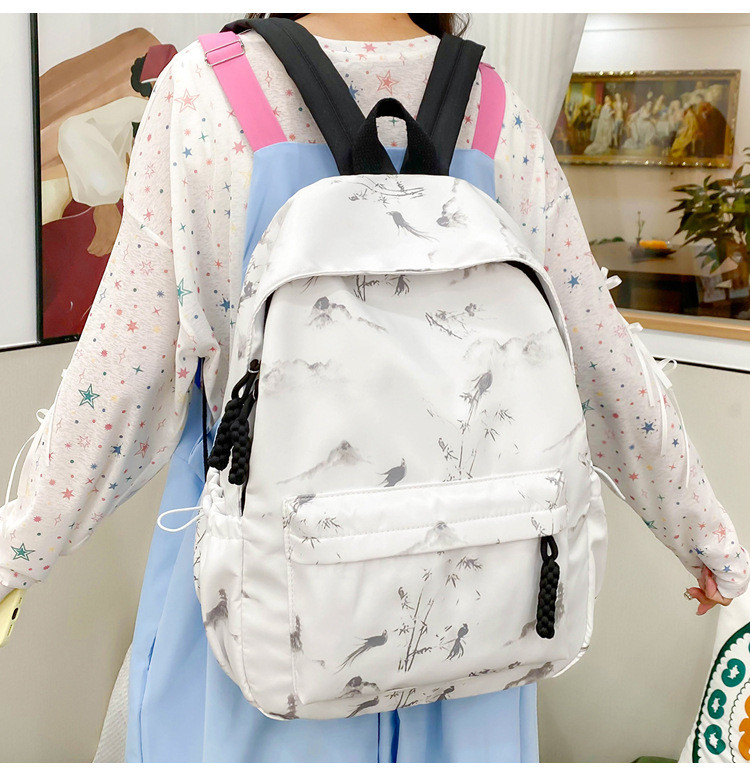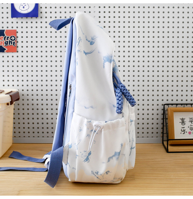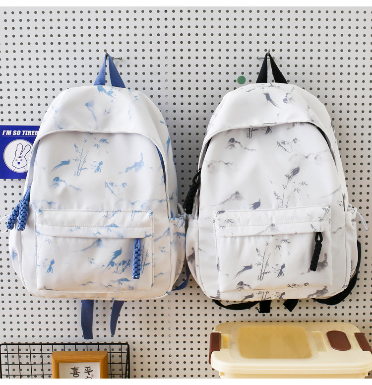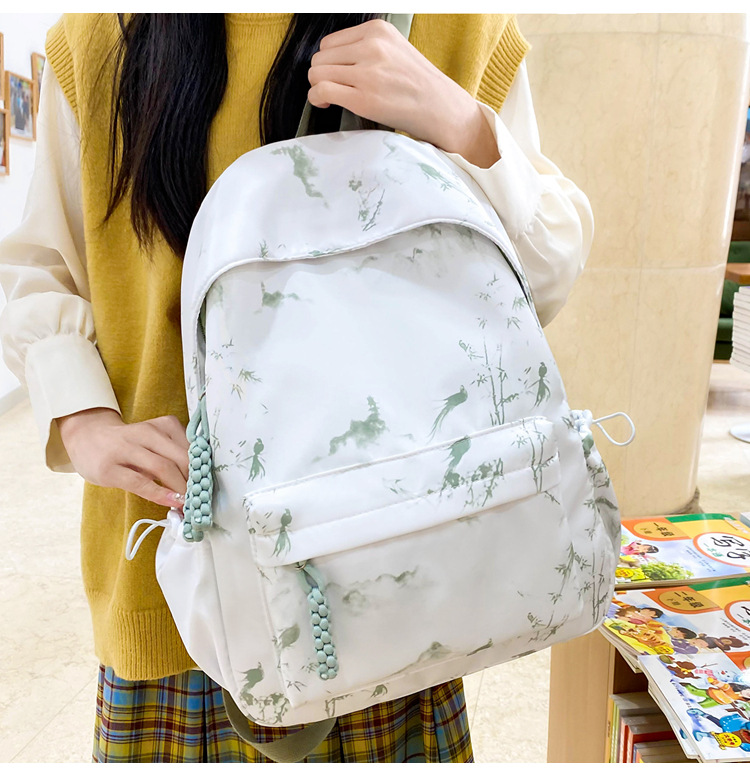 新学期シーズンの甘くてファッショナブルなバックパック、新しい大容量の学生スクールバッグ、絞り染めプリントの中国風文学バックパック