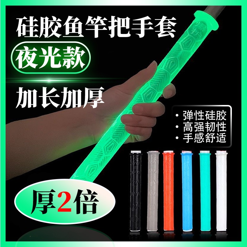 暗闇で光る、アップグレードされた、長く、厚く、耐摩耗性の釣竿ハンドルカバー、滑り止めシリコン吸汗性多機能グリップカバー
