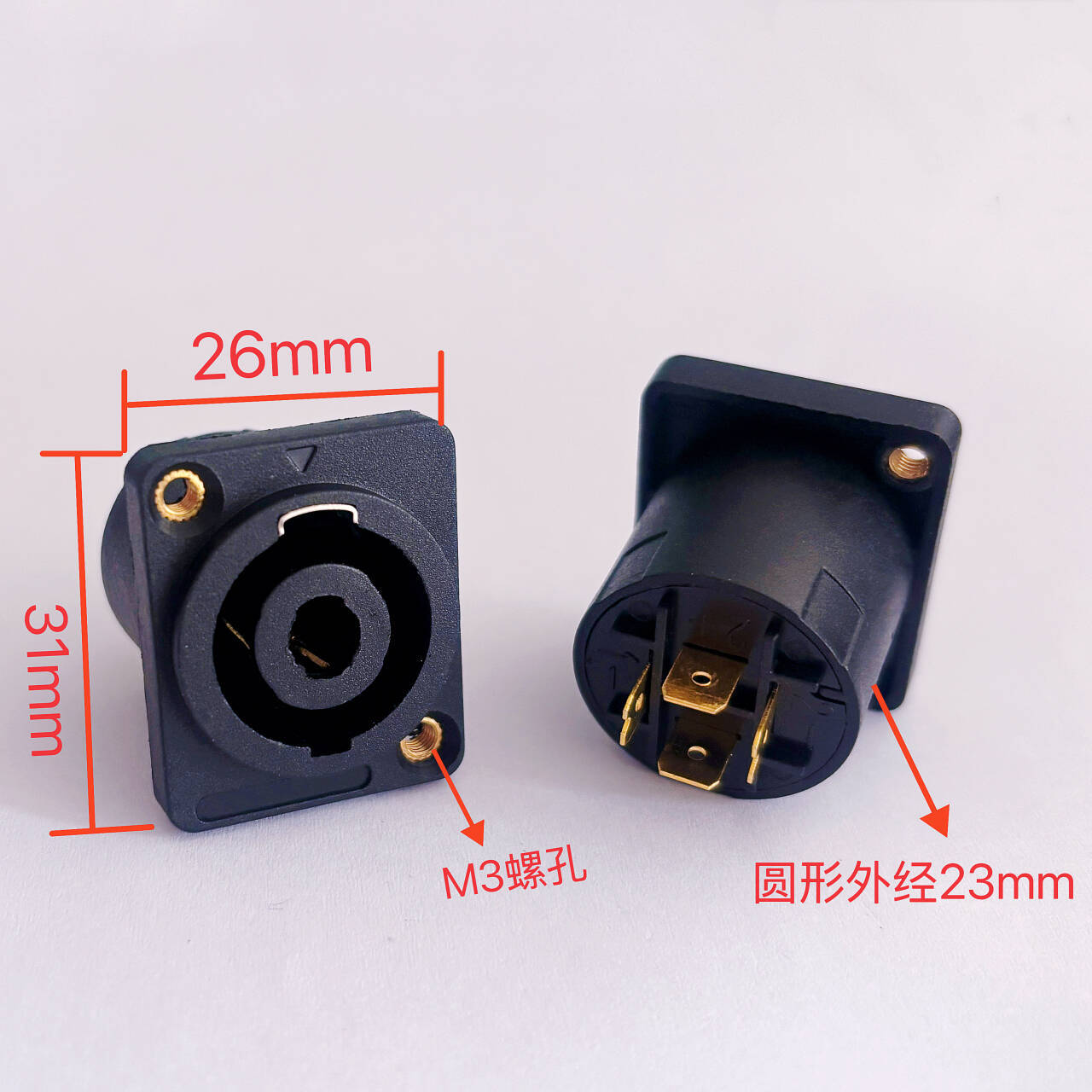 专业金属音箱插座四芯插座欧式卡侬母座音响插头圆形4芯音响插座
