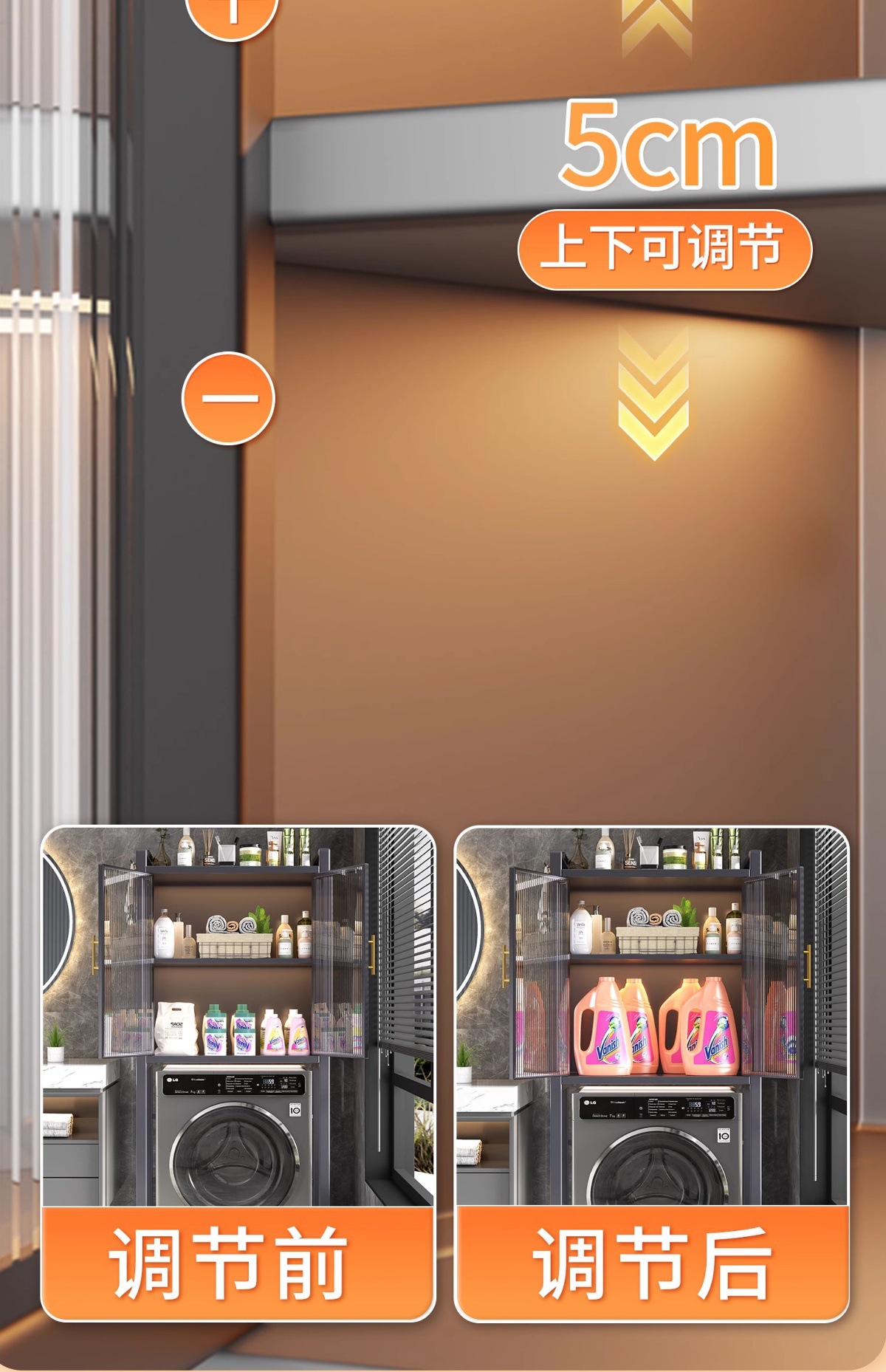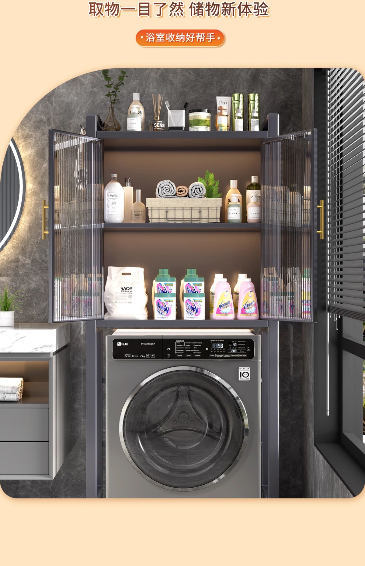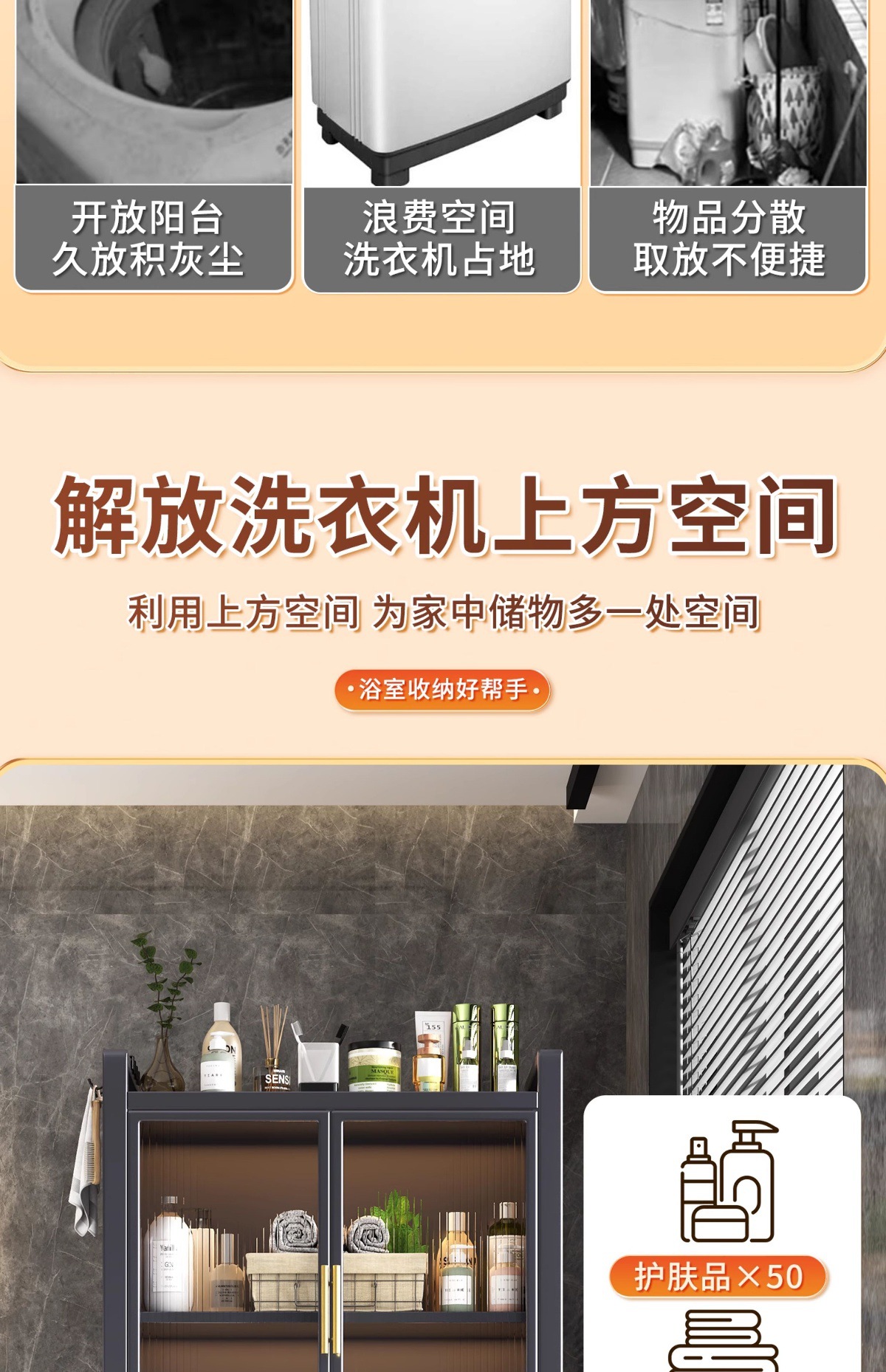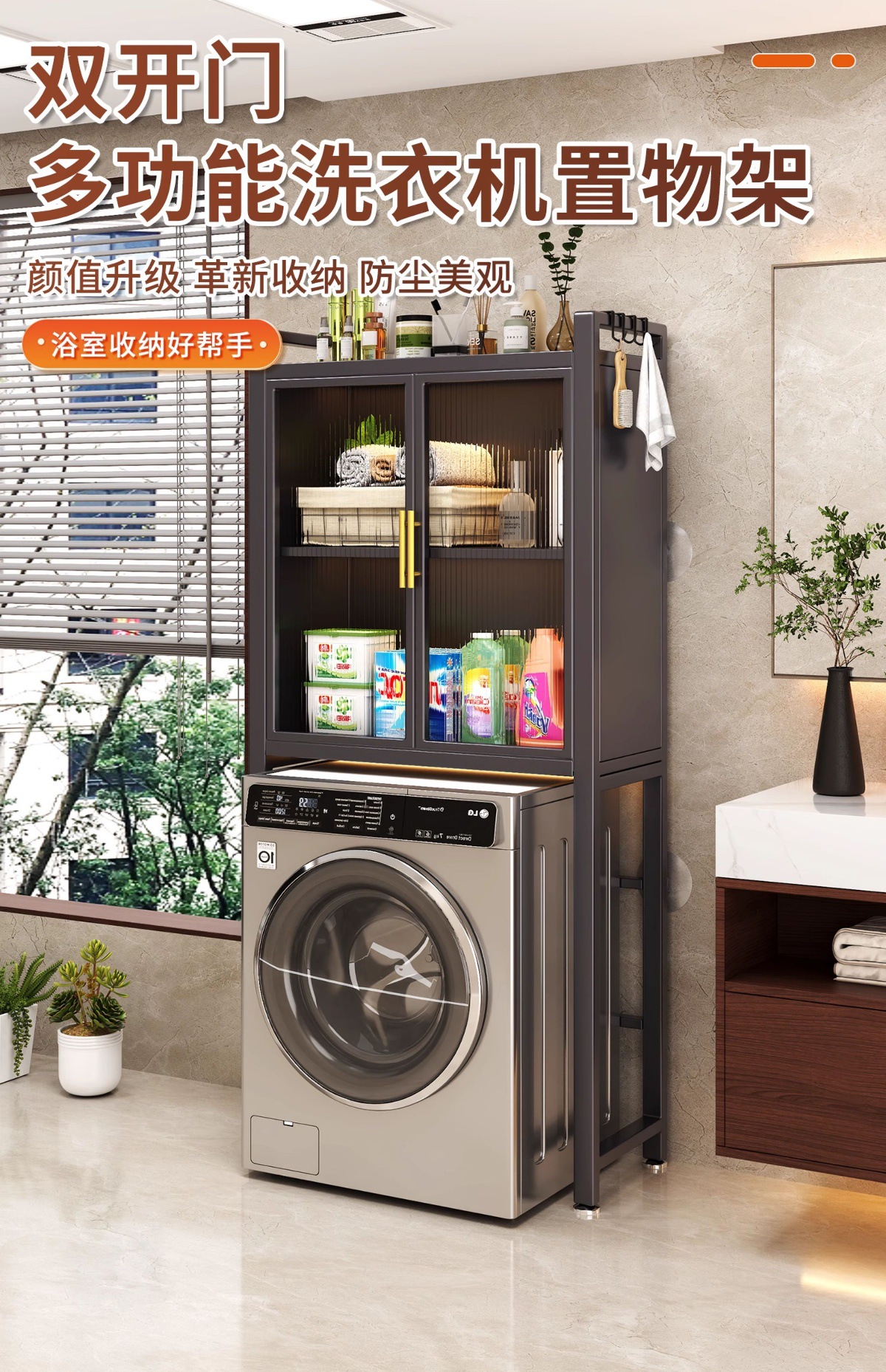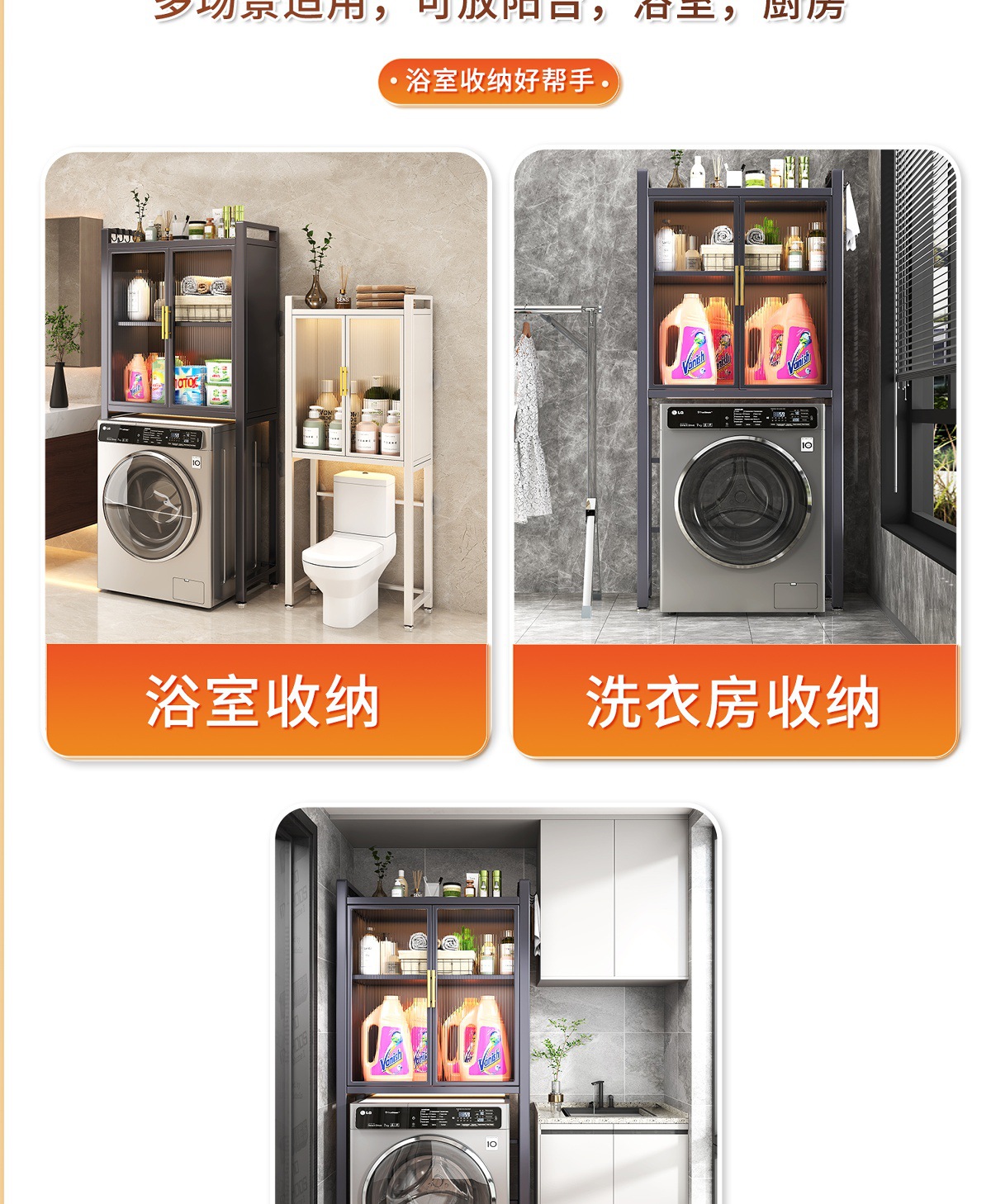 卫生间马桶上方储物柜落地式洗衣机防尘收纳储物柜防水浴室置物架