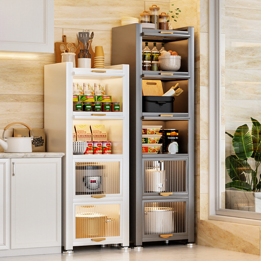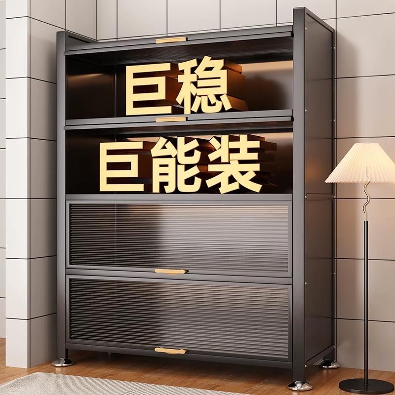 工場直送スチール製収納ラック床置き多層収納キャビネットキッチン多機能収納跳ね上げドアキャビネット