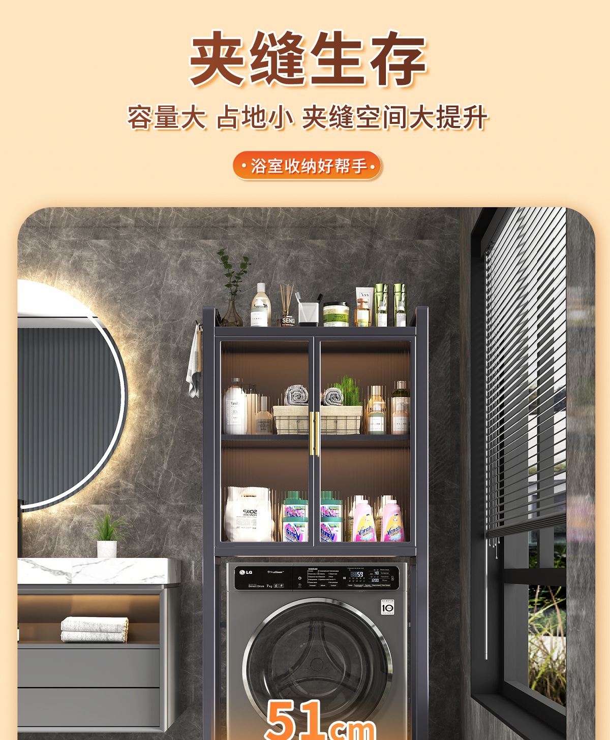 2025年新型トイレ洗濯機隙間防塵収納キャビネット側面多機能省スペース家庭用